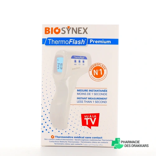 Pour prendre la température de toute la famille en un clin d'oeil et sans avoir à désinfecter le thermomètre avant chaque mesure, ne manquez pas le thermomètre sans contact ThermoFlash Premium conçu par Biosynex !