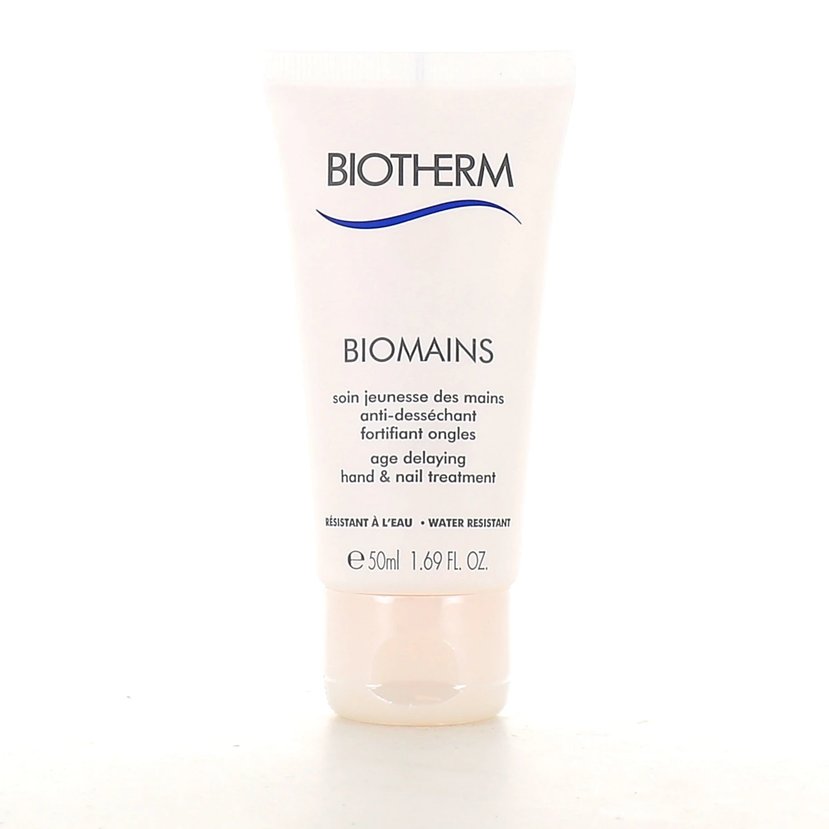 Biotherm Biomains est un soin jeunesse des mains anti-desséchant et fortifiant des ongles, qui aide à limiter l'apparition des signes du vieillissement et des taches brunes.
