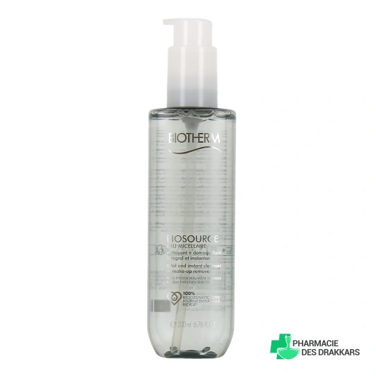L'eau micellaire Biotherm Biosource est une solution nettoyante et démaquillante alliant efficacité, gain de temps et douceur. Elle s'utilise au quotidien sur tous les types de peaux et s'avère efficace sur tous les types de maquillages, même waterproof.