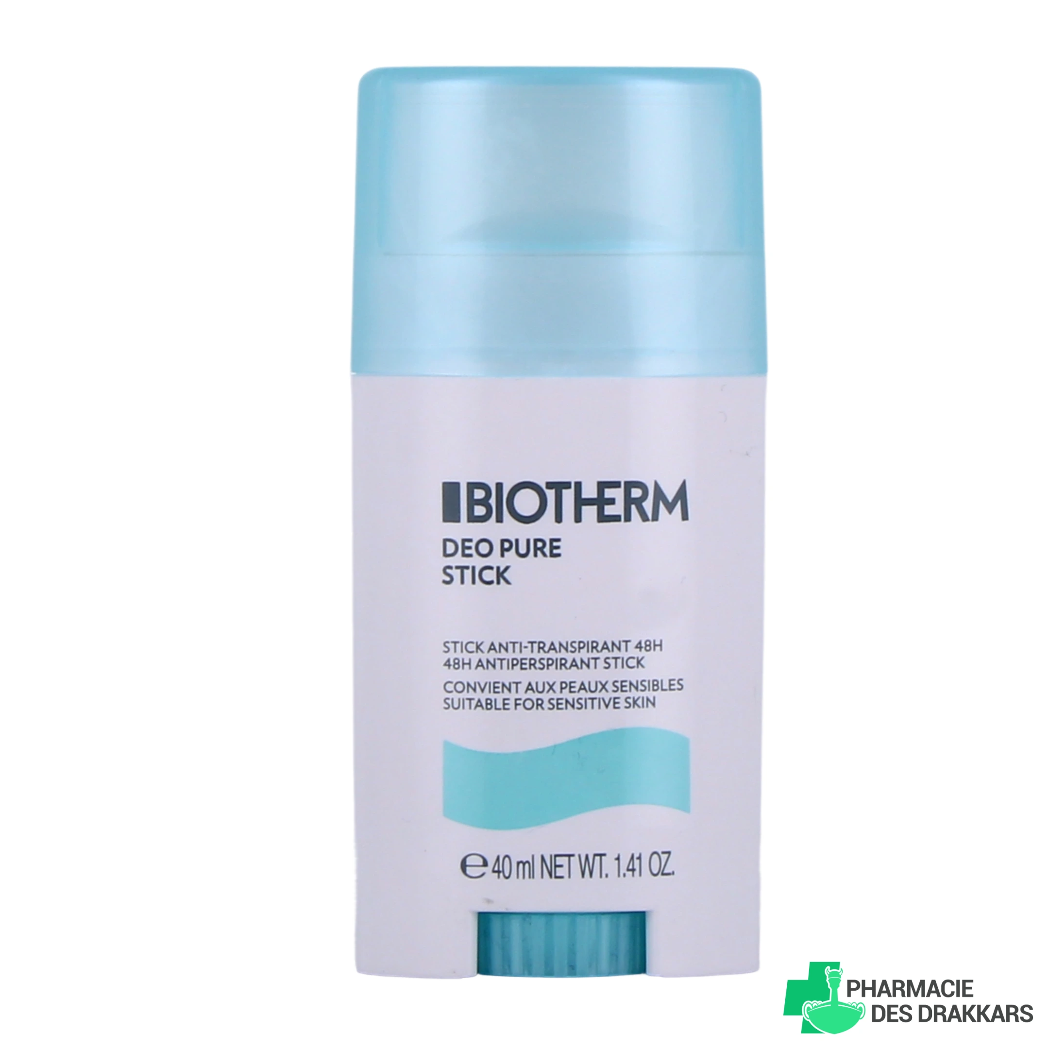 Les conditionnements proposés par votre pharmacie en ligne : déodorant stick de 40 ml de Biotherm Déo Pure Stick Anti-Transpirant.