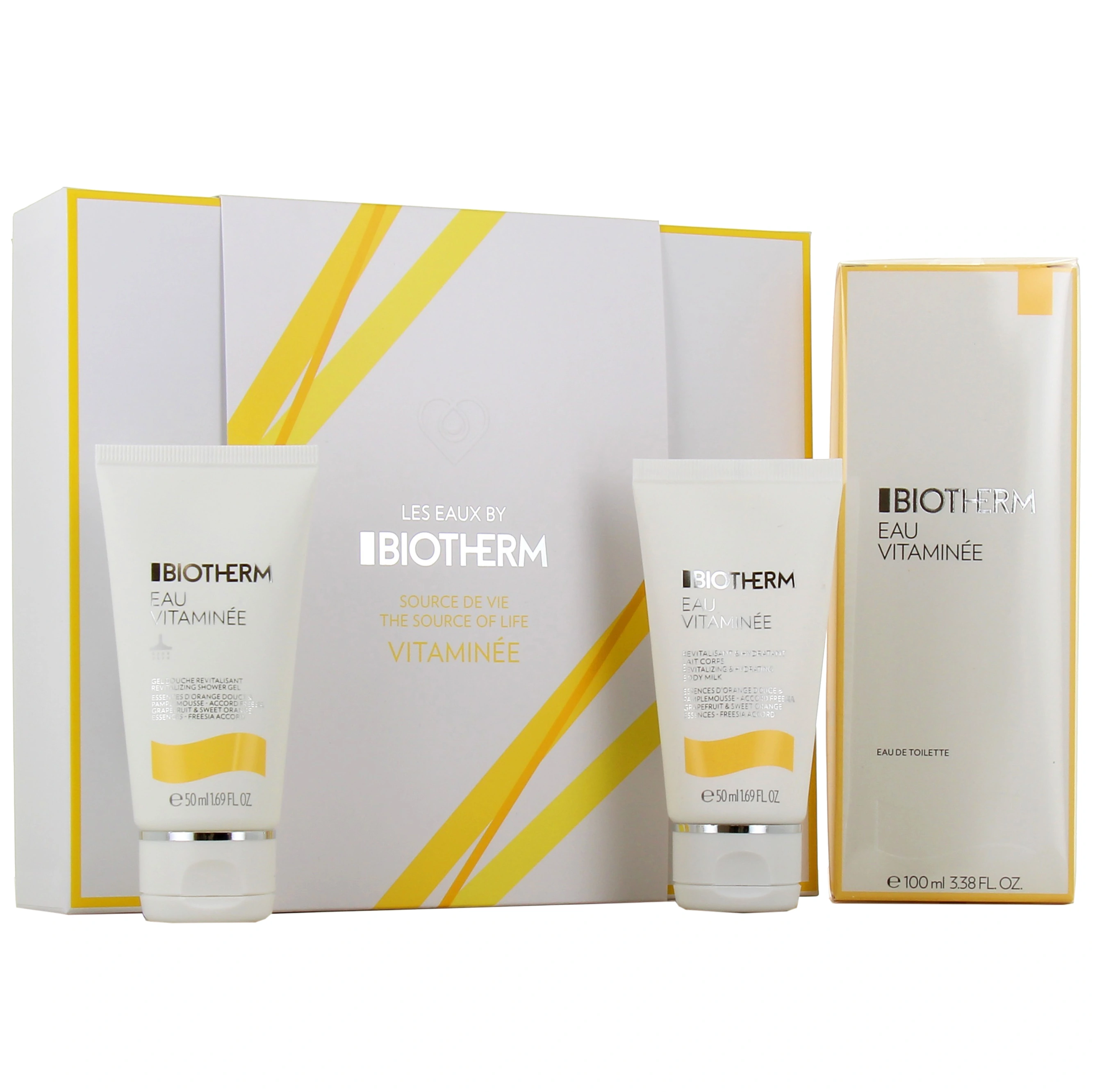 Présentations disponibles pour l'eau de toilette Biotherm sur notre pharmacie en ligne : Flacon de 50 ml ou 100 ml à l'unité ; coffret composé d'une eau de toilette 100 ml + gel douche 50 ml + lait corps 50 ml.