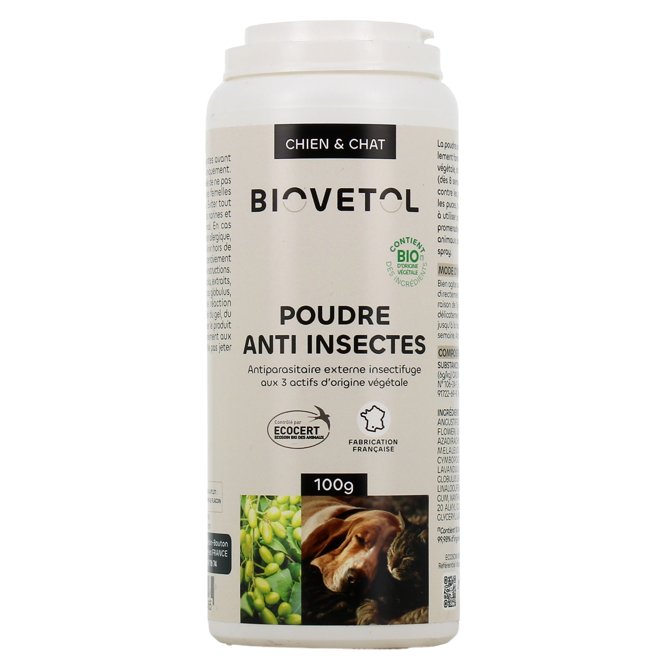 Pour protéger votre chat ou votre chien contre les insectes et parasites les plus courants, découvrez la poudre anti-insectes Biovetol bio pour chien et chat !