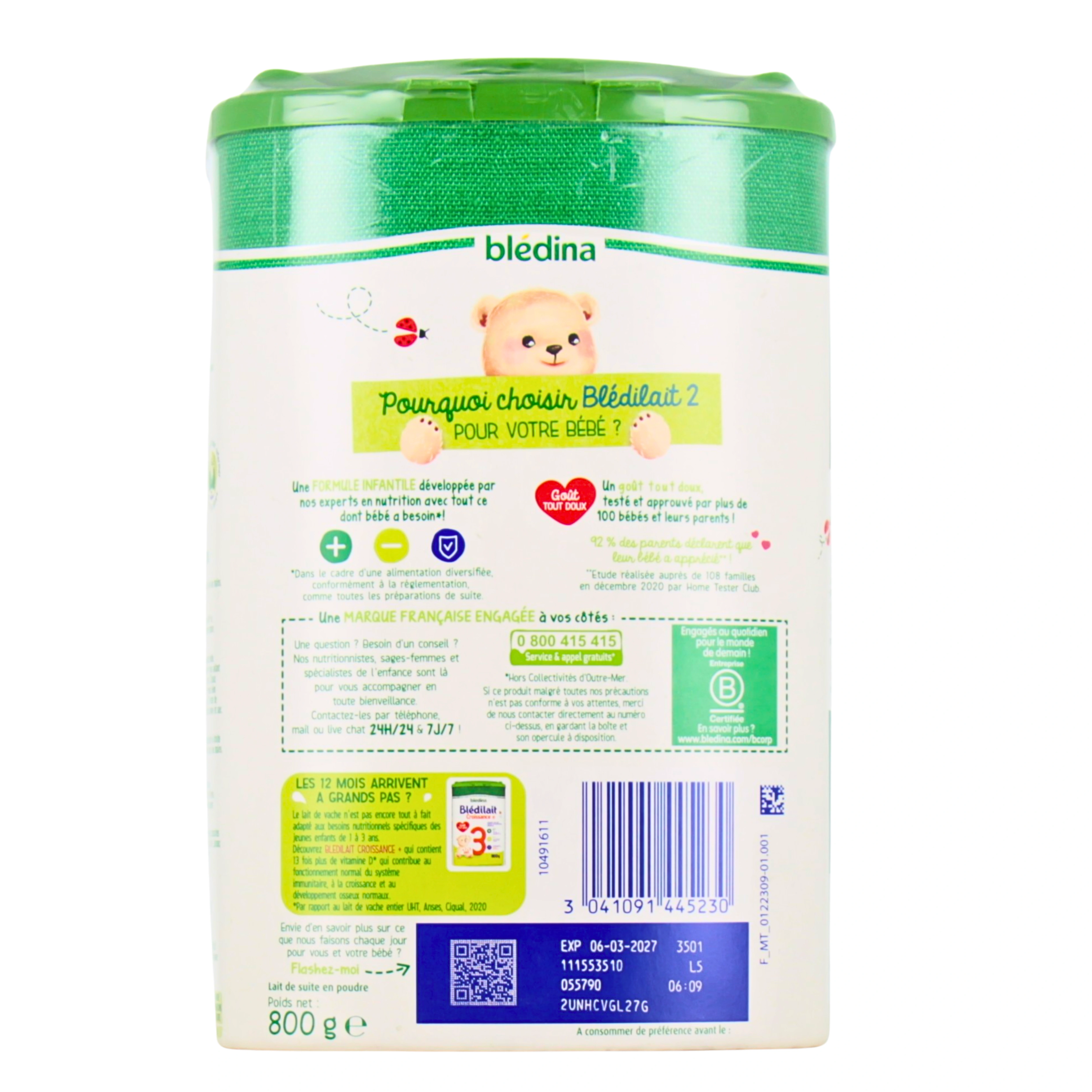 Vous pourrez retrouver le lait en poudre Blédilait 2ème âge 6-12 mois dans les conditionnements suivants chez Pharmacie des Drakkars : boite de 800 g