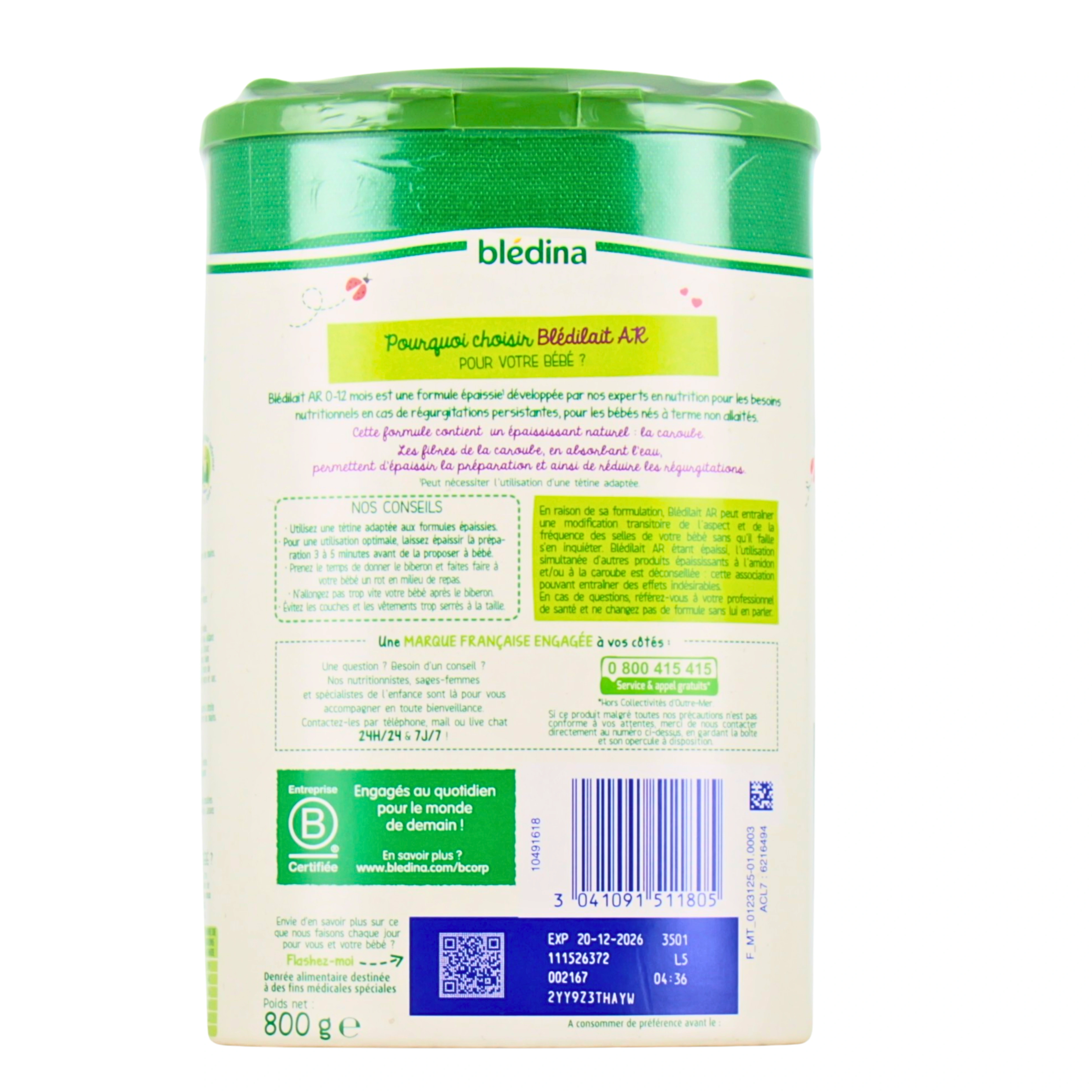 Le lait AR 0-12 Mois Blédilait est un lait infantile en poudre à la formule épaissie pour les besoins nutritionnels en cas de régurgitations persistantes chez les bébés nés à terme et non allaités de la naissance jusqu'à un an.