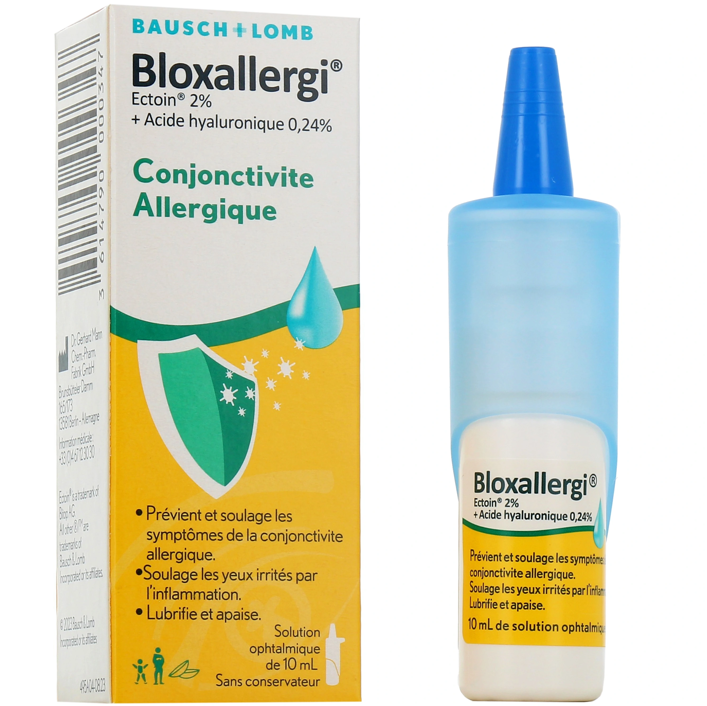 Bloxallergi est une solution ophtlamique du laboratoire Bausch & Lomb permettant de soulager les yeux en cas de conjonctivite allergique.