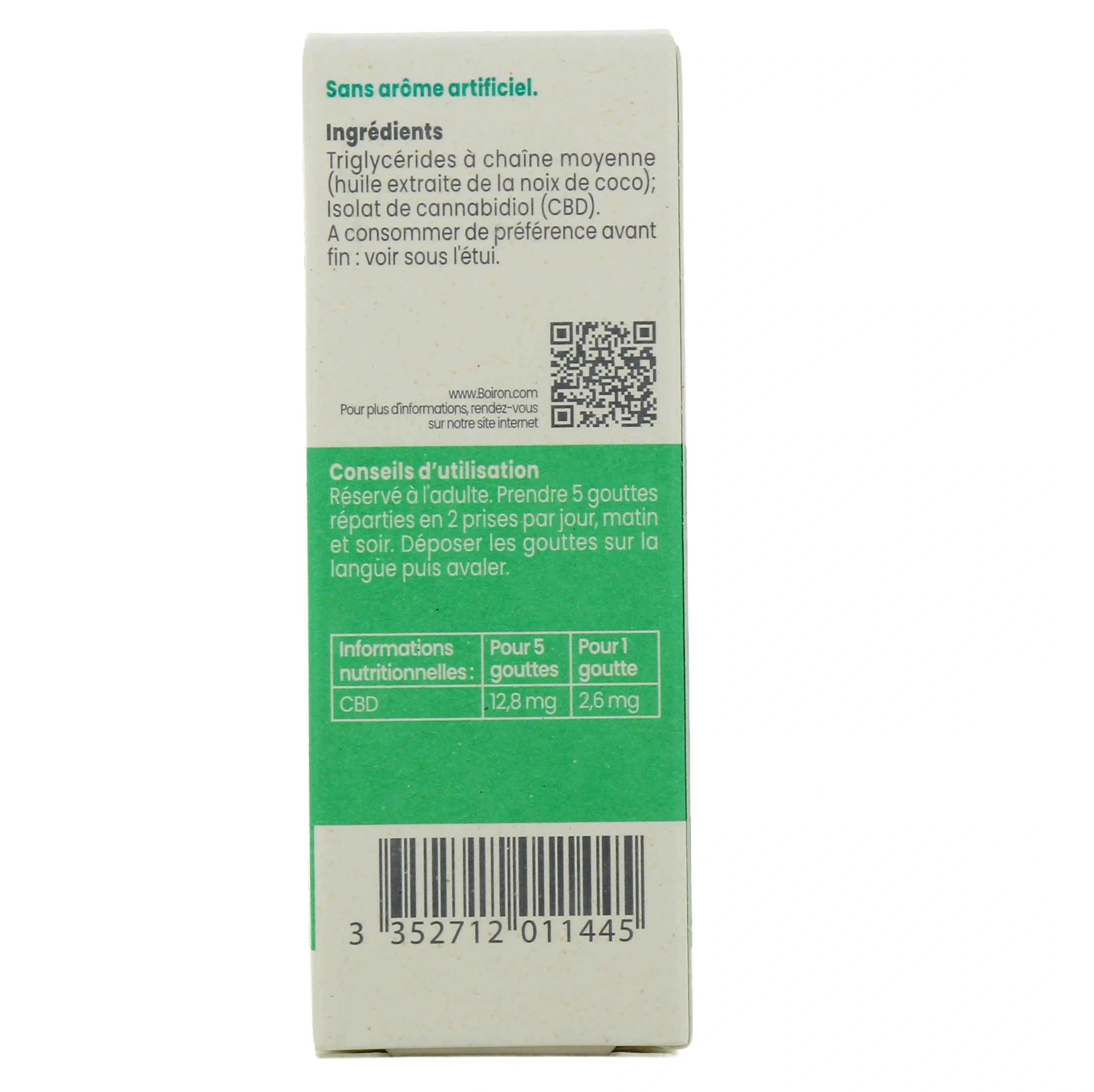 Cette huile de CBD par Boiron est élaborée à partir de l'isolat de CBD, c'est à dire la forme la plus pure du cannabidiol. Le CBD a été isolé et purifié au maximum pour éviter la présence de THC et autres substances. Contrairement aux huiles à spectre large (Broad Spectrum) ou à spectre complet (Full Spectrum), cette huile ne contient pas d'autres phytocannabinoïdes. Vous bénéficiez ainsi d'un produit sans THC, axé uniquement sur le CBD.