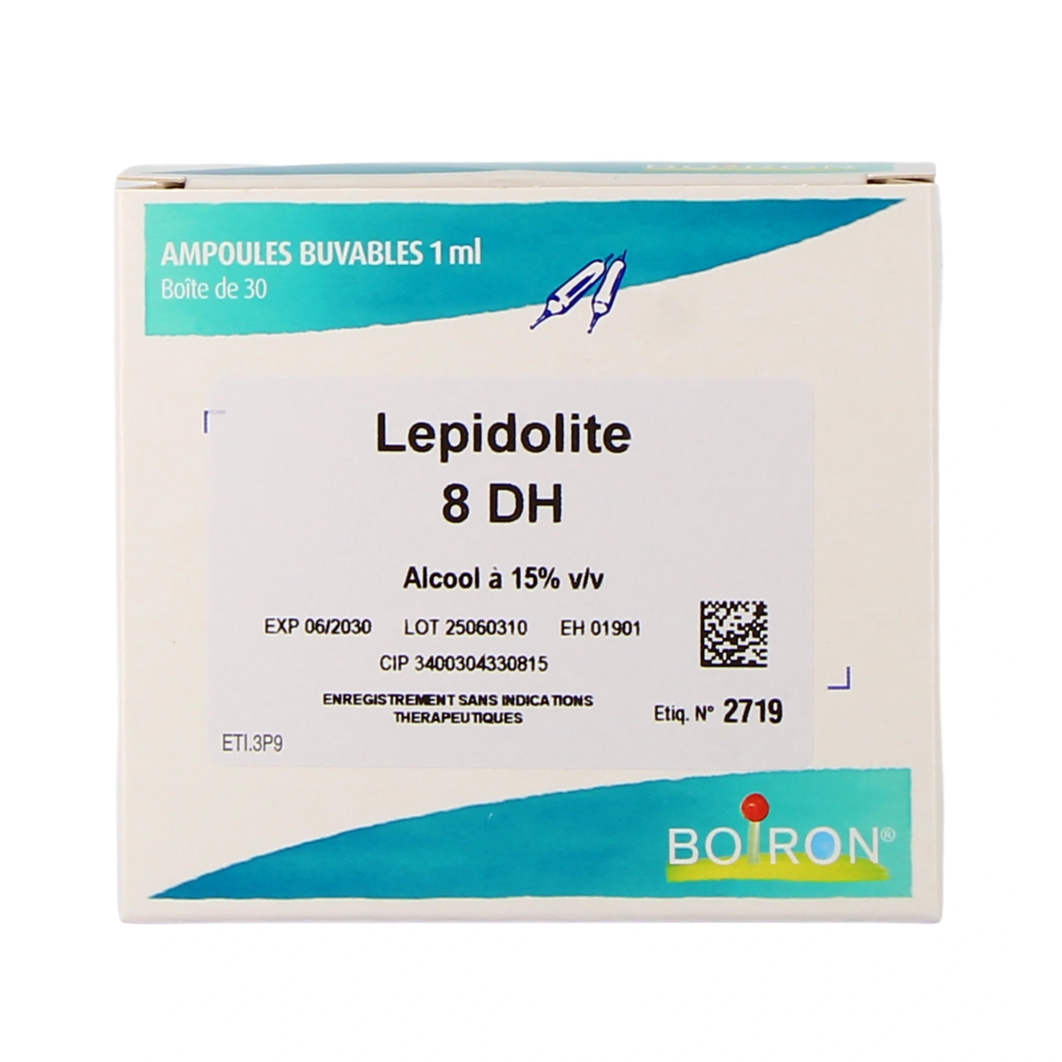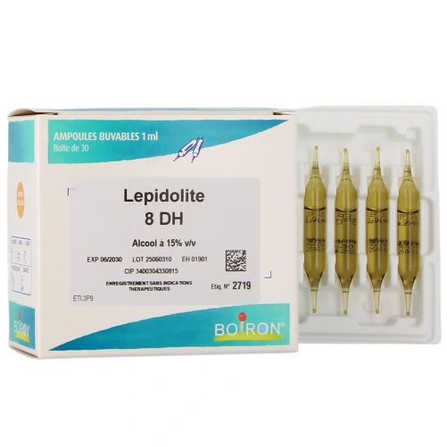 Boiron Lepidolite est également disponible sous forme d'ampoules buvables.