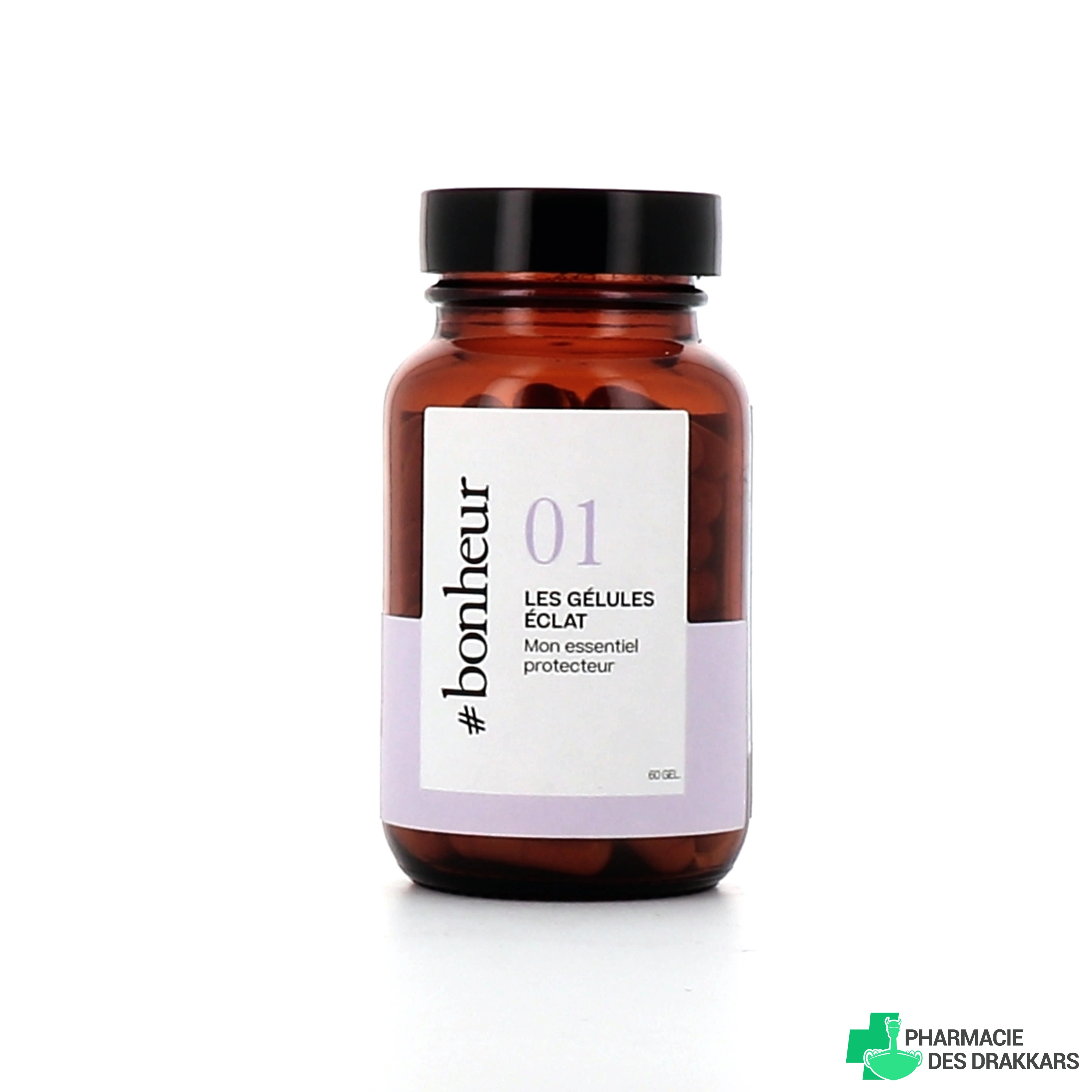 Les présentations proposées par votre pharmacie en ligne pour les gélules Éclat de #bonheur : pilulier de 60 gélules pour un programme de 30 jours.