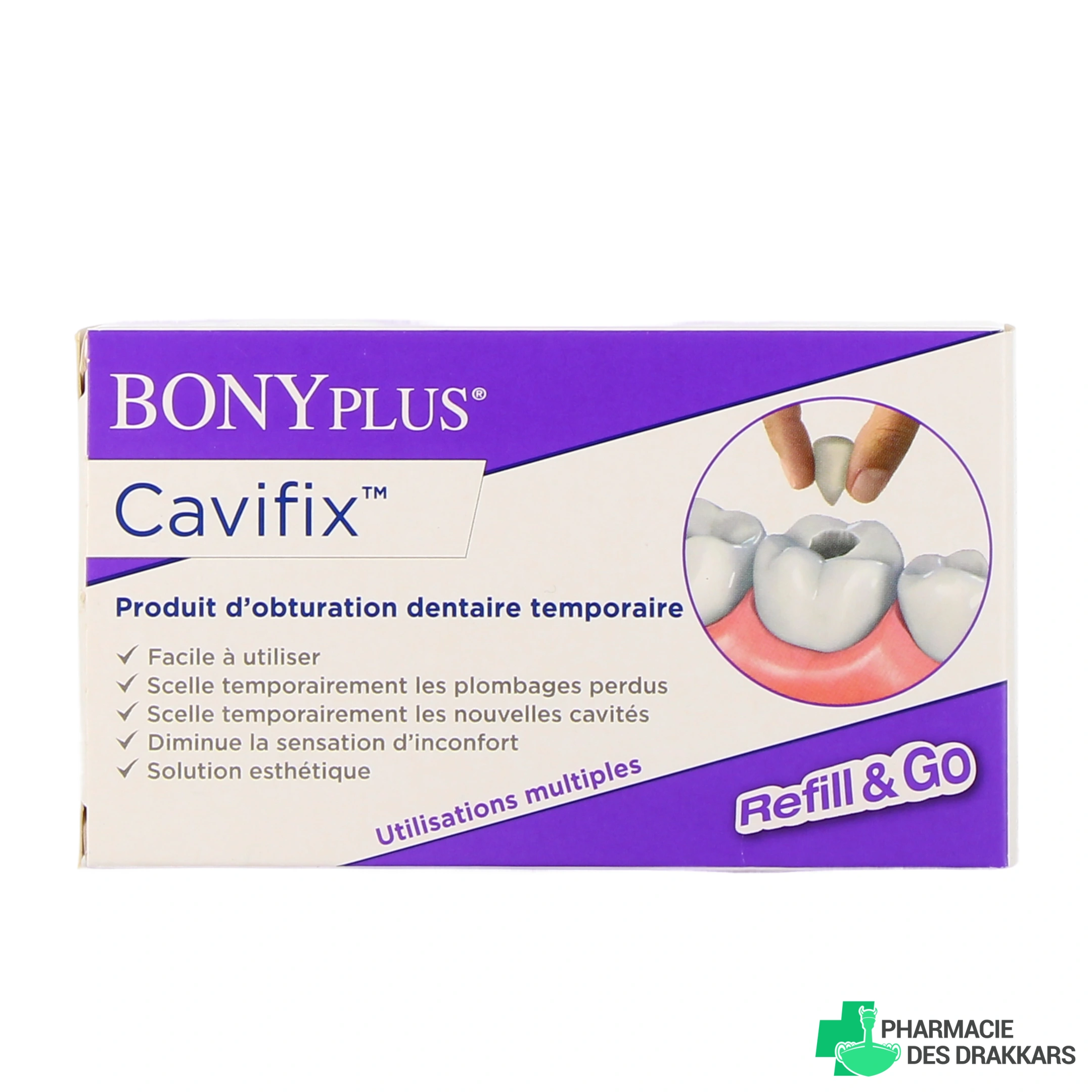 Le kit Bonyplus Cavifix est un dispositif médical qui constitue une solution provisoire contenant tous les produits et accessoires nécessaires à la réalisation d’une obturation dentaire temporaire.