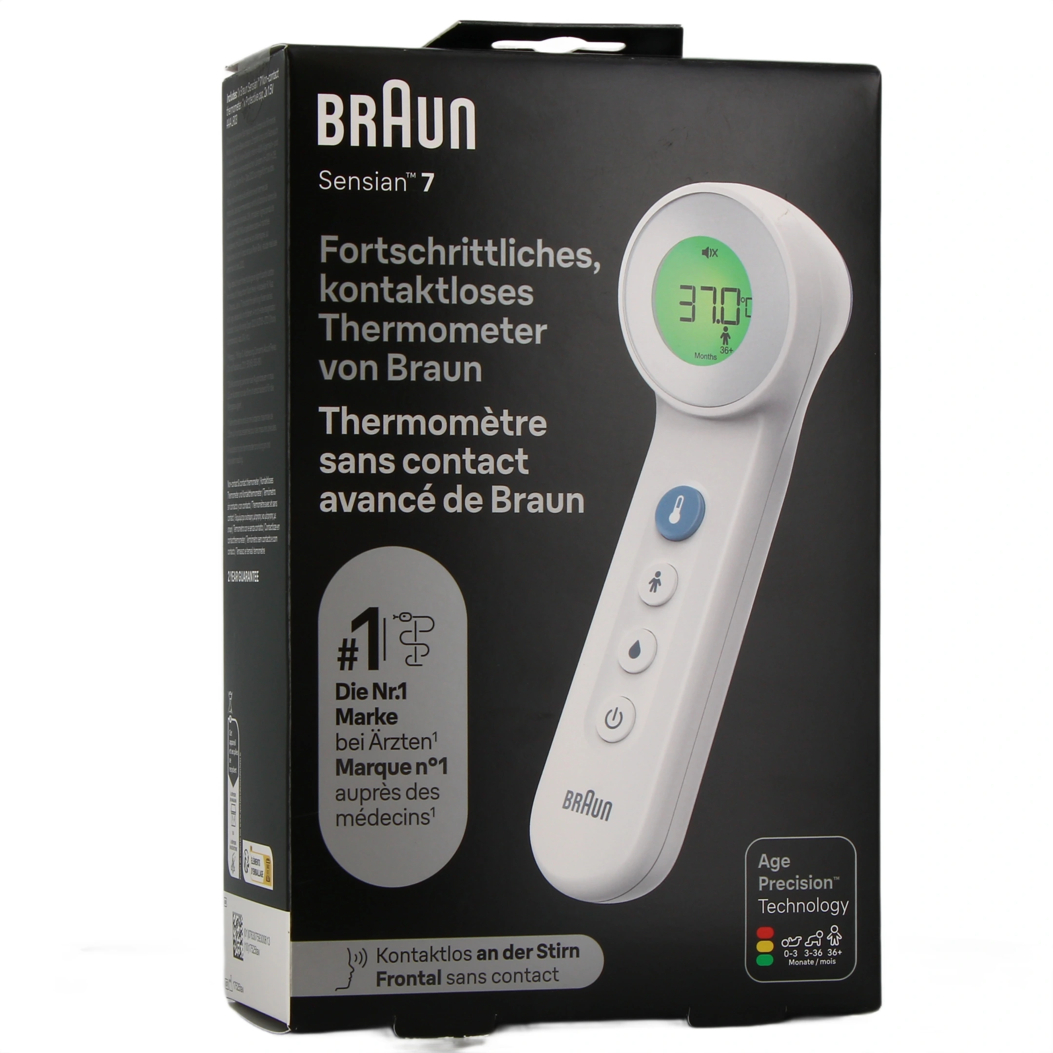 Possédant la technologie "Age Precision" unique et brevetée, ce thermomètre permet d'interpréter la température selon l'âge puisque des recherches cliniques ont démontré que la définition de la fièvre varie chez les nouveau-nés, les enfants et les adultes. Avec la technologie Age Precision, l'interprétation est facilitée par une lecture simplifiée par un code couleur : vert (température normale), jaune (température élevée) et rouge (forte température).