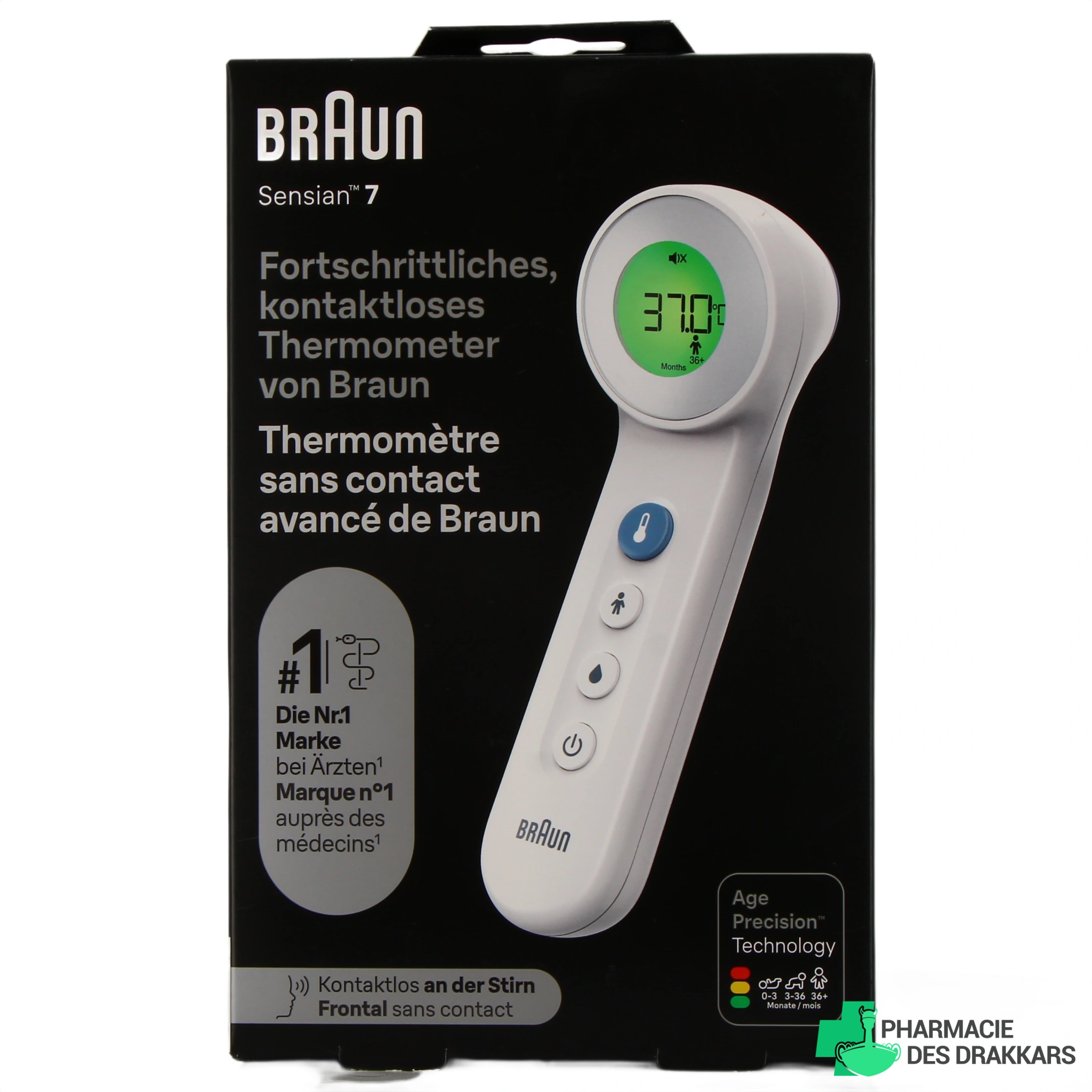 Conditionnements disponibles sur la Pharmacie des Drakkars pour le thermomètre sans contact + contact frontal BNT 400 Braun :