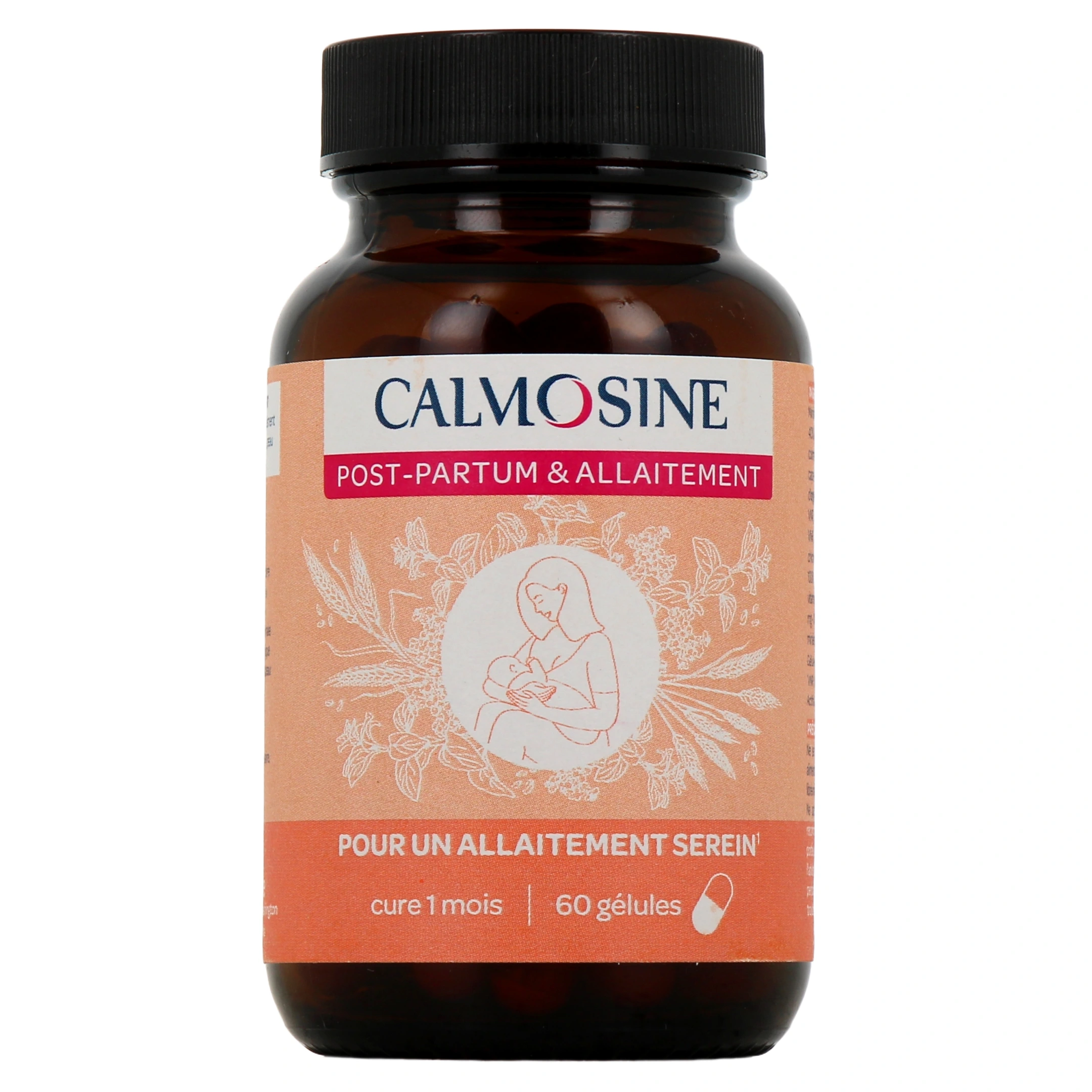 Le complément Post-Partum & Allaitement proposé par la marque Calmosine apporte les nutriments essentiels pour un allaitement serein : forme et vitalité, bien-être émotionnel, peau et cheveux, soutien de la lactation.