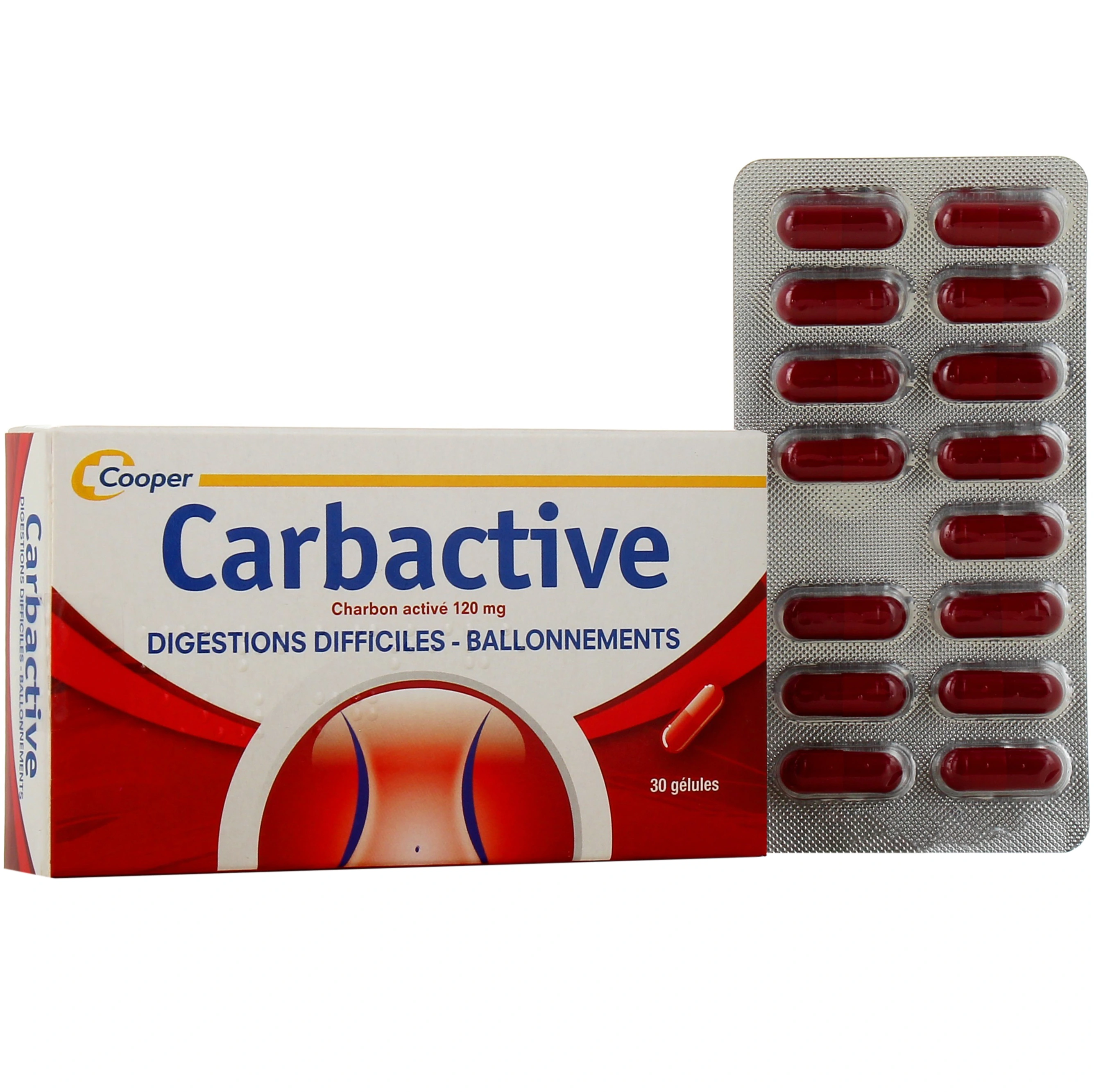 Proposé par le laboratoire Cooper, Carbactive est un médicament sous forme de gélules. Il s'agit d'un adsorbant intestinal dont l'action repose sur un actif majeur : le charbon activé, dosé à 120 mg par gélule. Carbactive contribue à soulager la digestion difficile, et plus particulièrement les ballonnements, en absorbant les gaz présents dans le tube digestif.