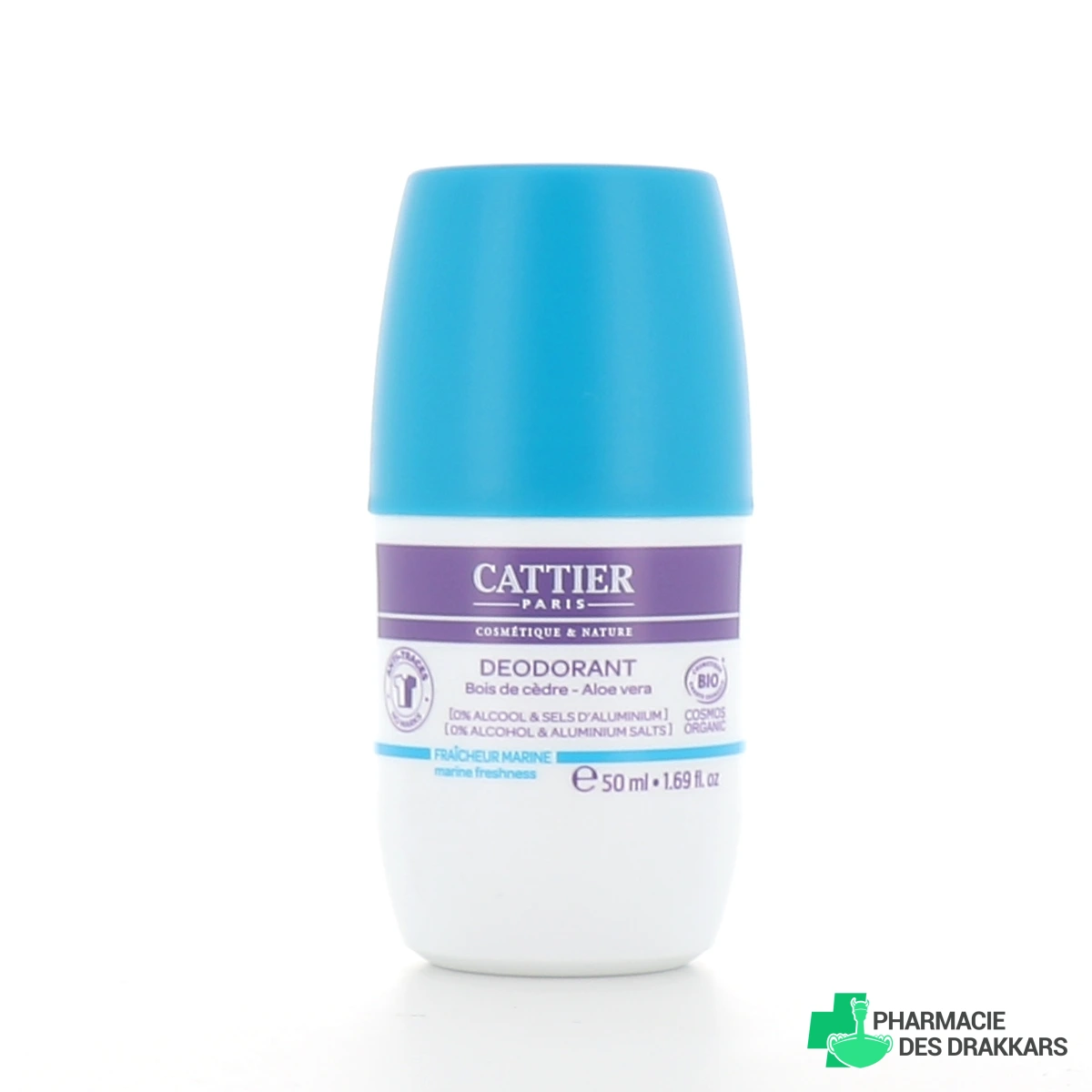 Présentation proposée par votre pharmacie en ligne pour le déodorant roll-on 24h Bio Cattier : roll-on de 50ml - Parfum au choix.