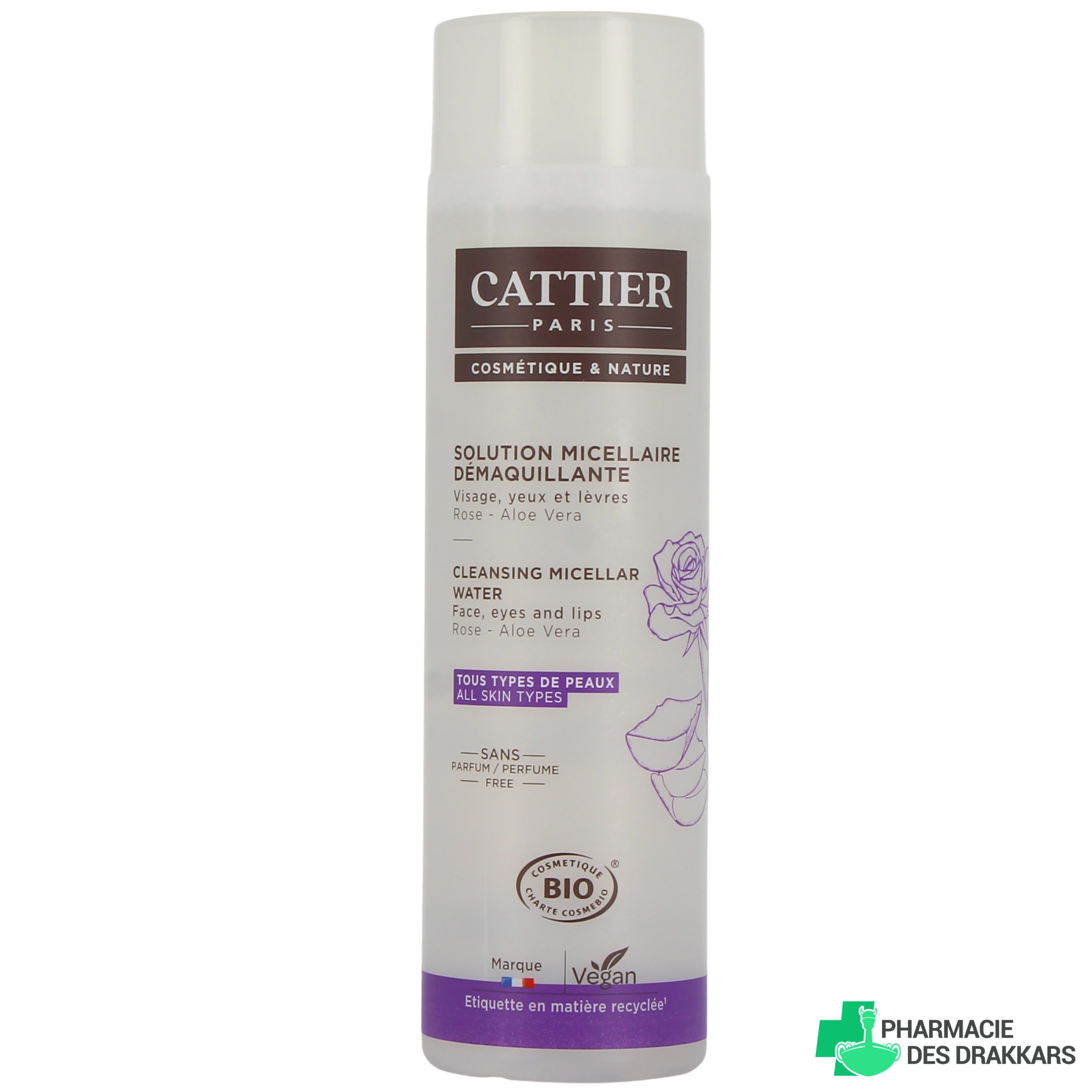 Présentation disponible pour la solution micellaire démaquillante Cattier sur notre pharmacie en ligne : Flacon de 300 ml