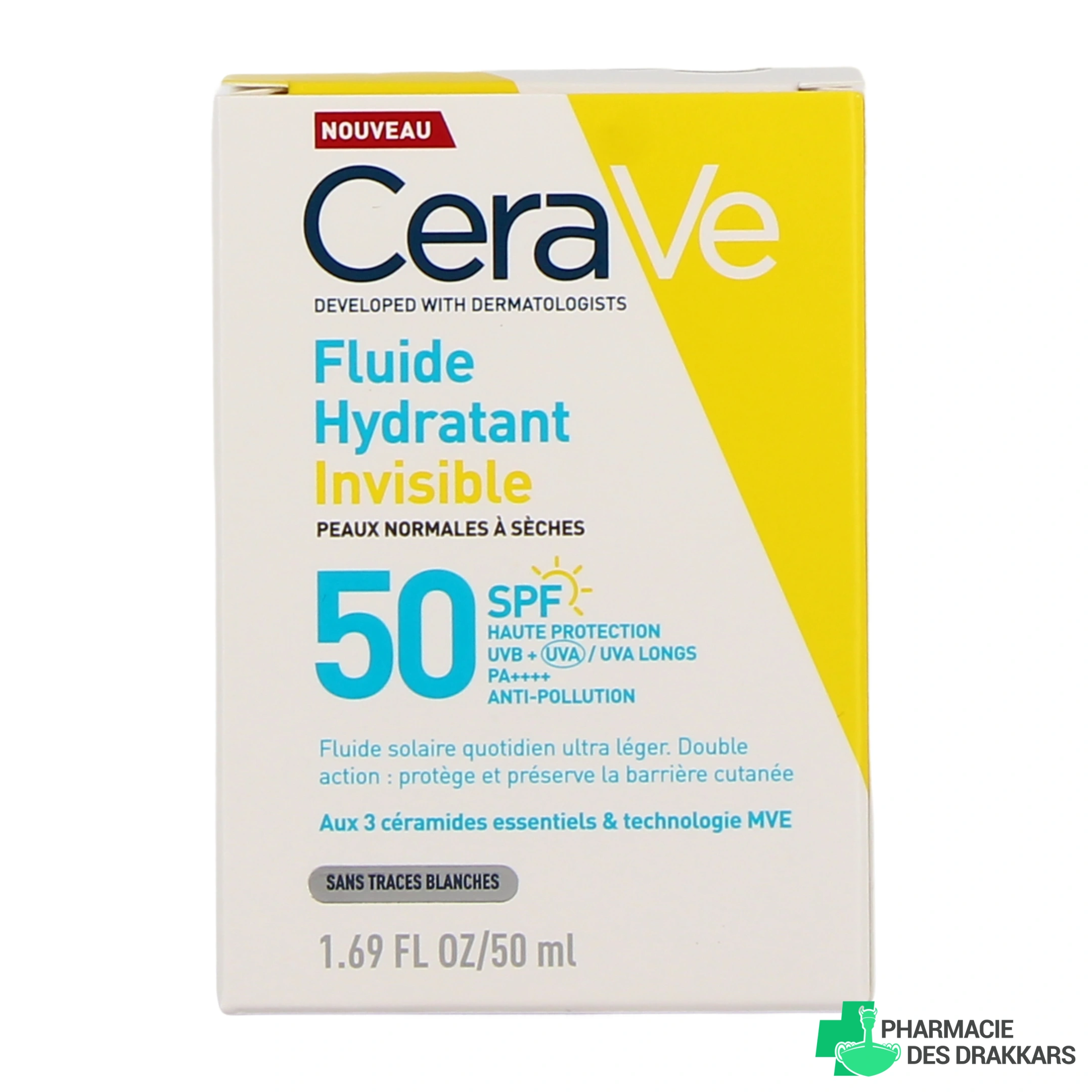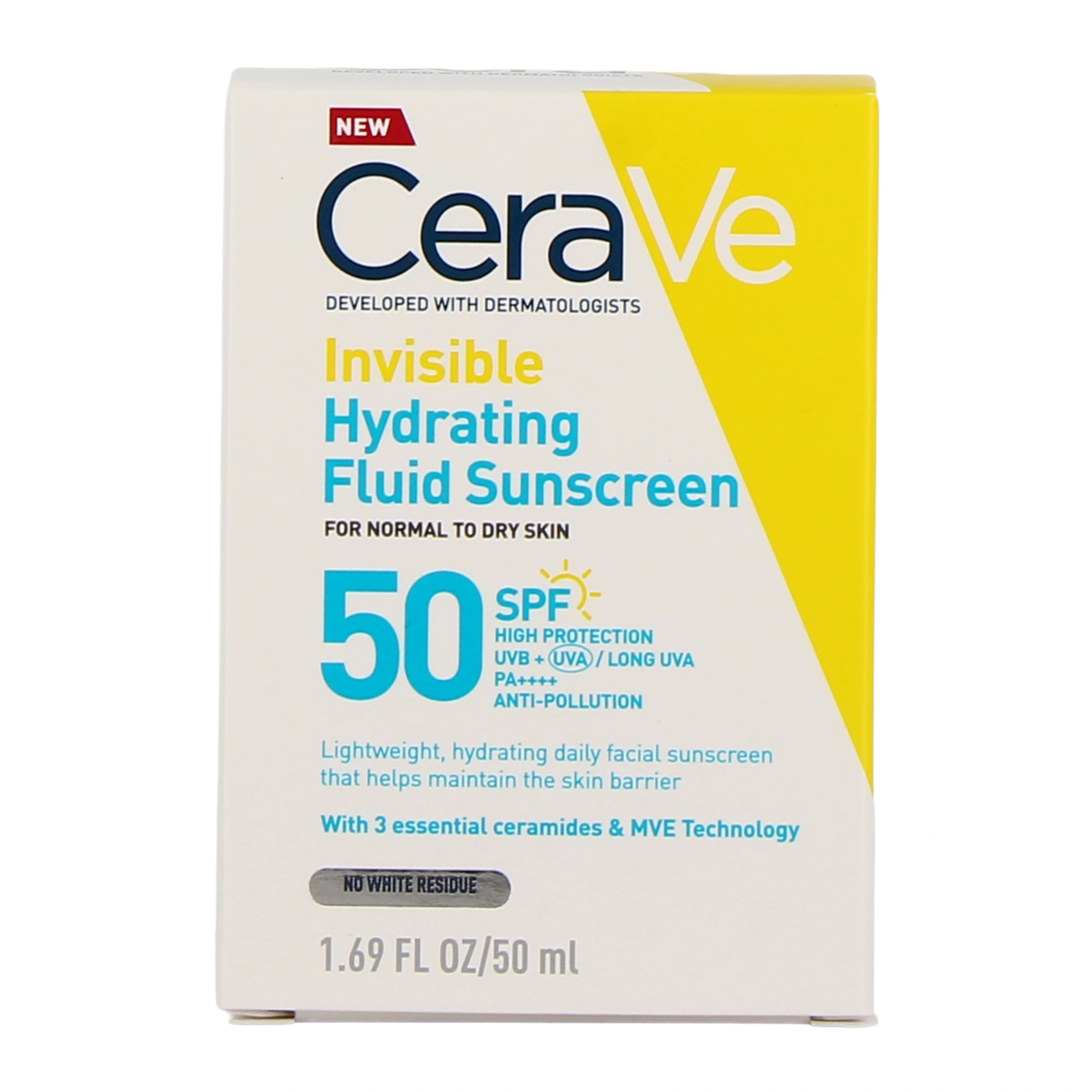Action du fluide solaire invisible hydratant SPF50 CeraVe