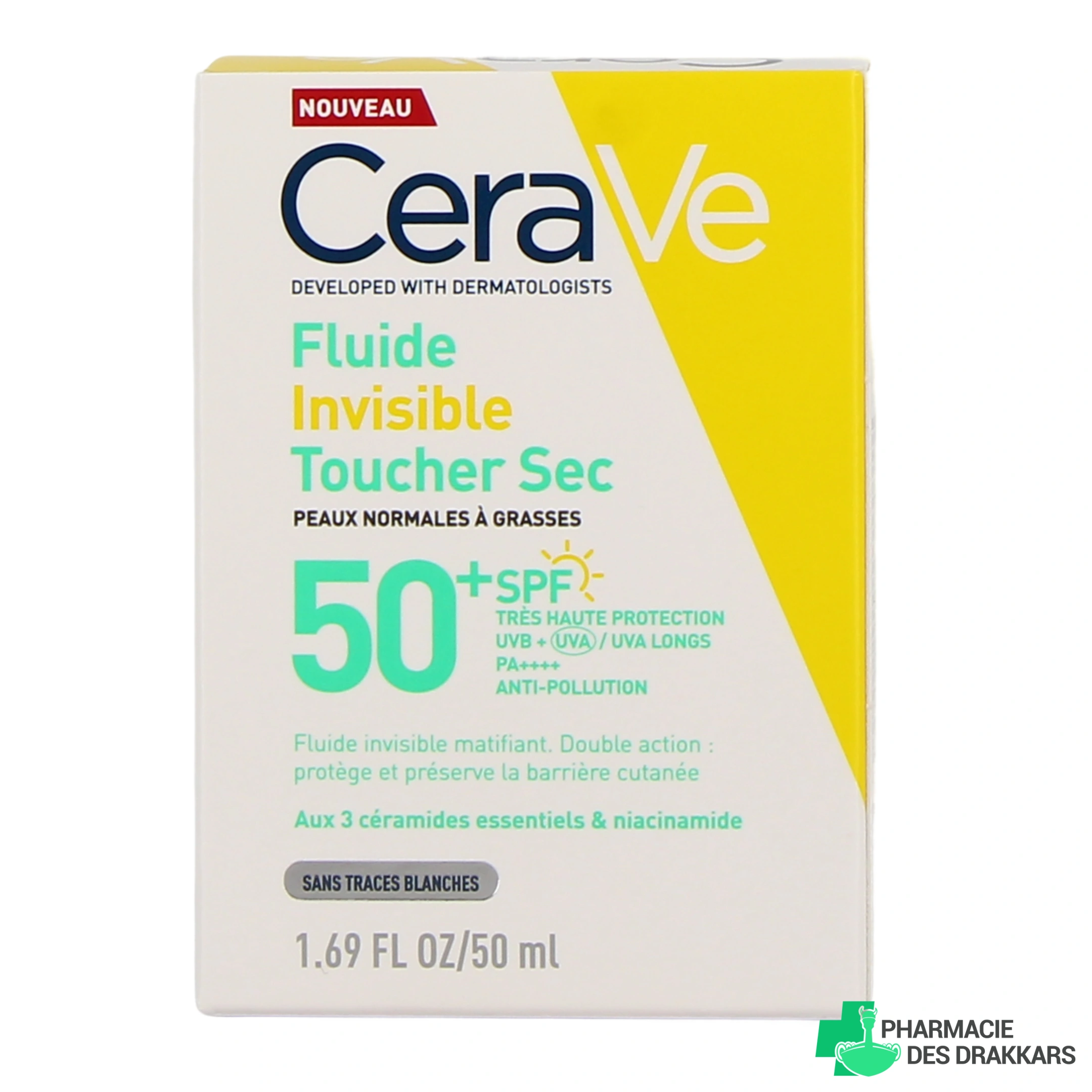 Caractéristiques du fluide solaire invisible toucher sec SPF50+ CeraVe