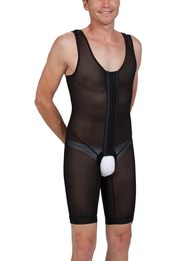 Le combiné court Cerecare (anciennement Cereplas) est un vêtement compressif indiqué en cas de liposuccion du ventre, des hanches, des fesses et des cuisses chez l'homme.