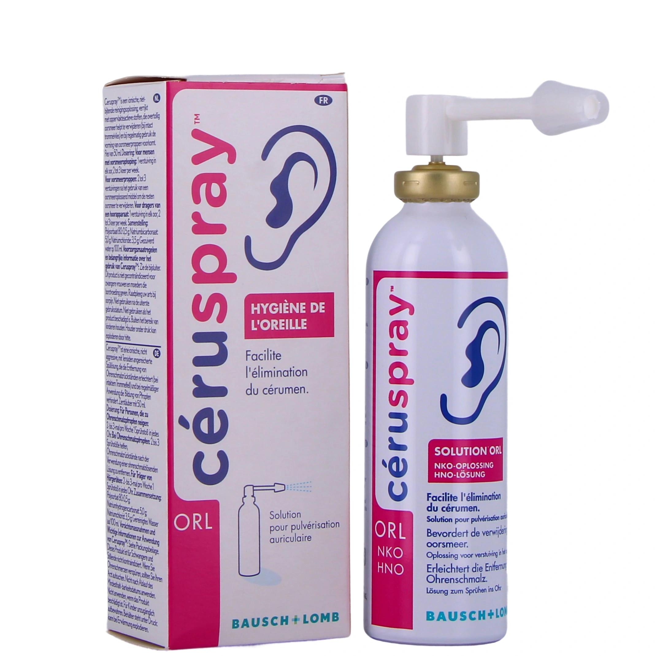 Ceruspray un dispositif médical destiné à l'hygiène de l'oreille, comprenant une solution de lavage à pulvérisation auriculaire qui permet l'élimination des résidus de cérumen et permet ainsi d'éviter l'apparition de bouchon.