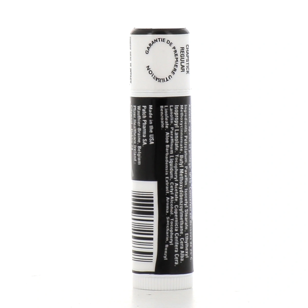 ChapStick Regular Baume à Lèvres est un stick à lèvres des laboratoires Pfizer contenant une protection solaire (indice SPF15).