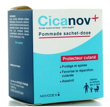 Cicanov + est une pommade cicatrisante sous forme de sachets-doses, qui permet de protéger les zones cutanées spécialement fragilisées et de favoriser leur réparation. Elle s'utilise chez l'adulte et l'enfant âgé de plus de 3 mois.