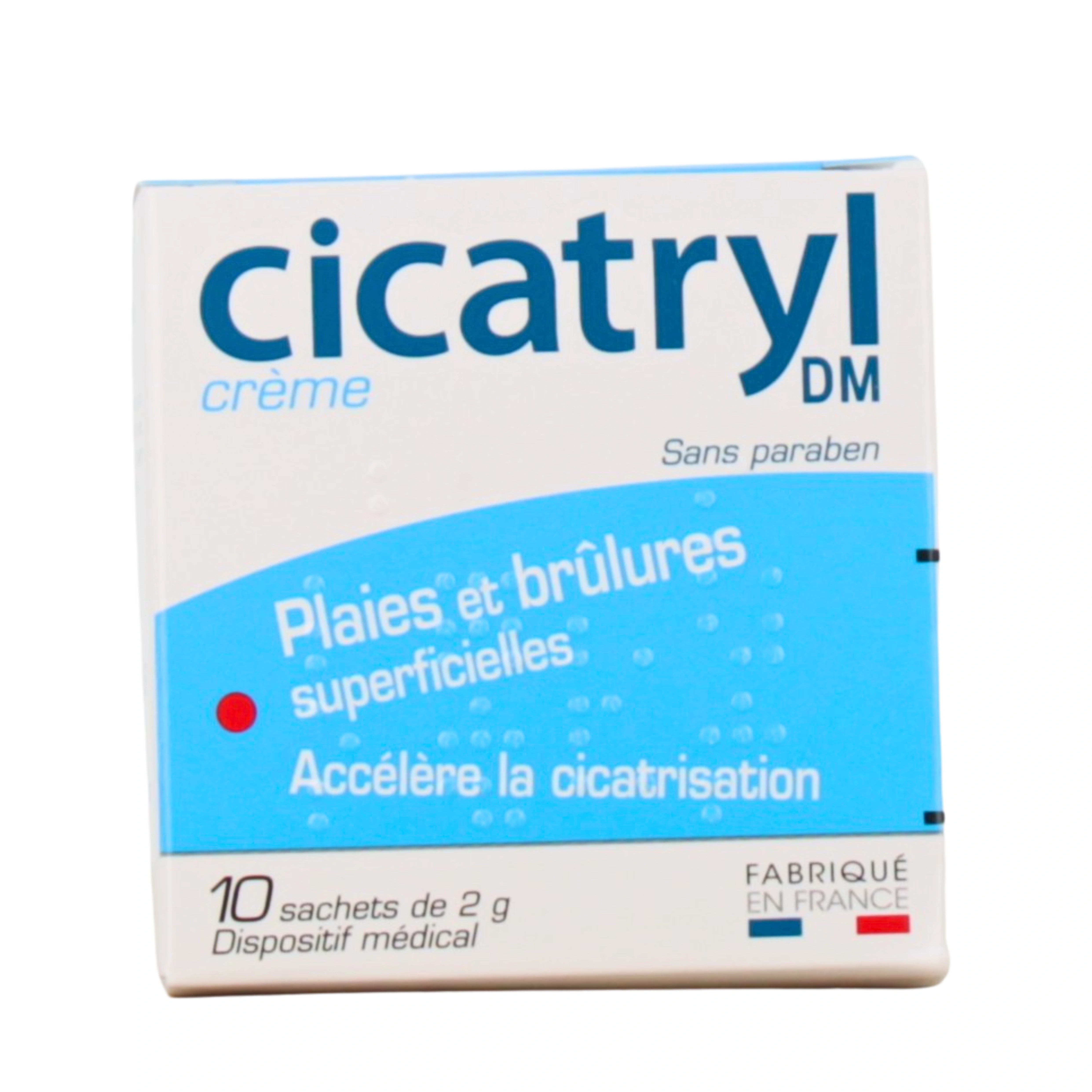 Crème Cicatryl. Elle ne doit en aucun cas être appliquée autour des muqueuses, ni dans et autour des yeux. En cas de contact avec ces zones, rincer immédiatement et abondamment à l'eau claire. Ne pas avaler et tenir hors de la portée des enfants. Ce produit ne doit pas être utilisé si le sachet est endommagé.