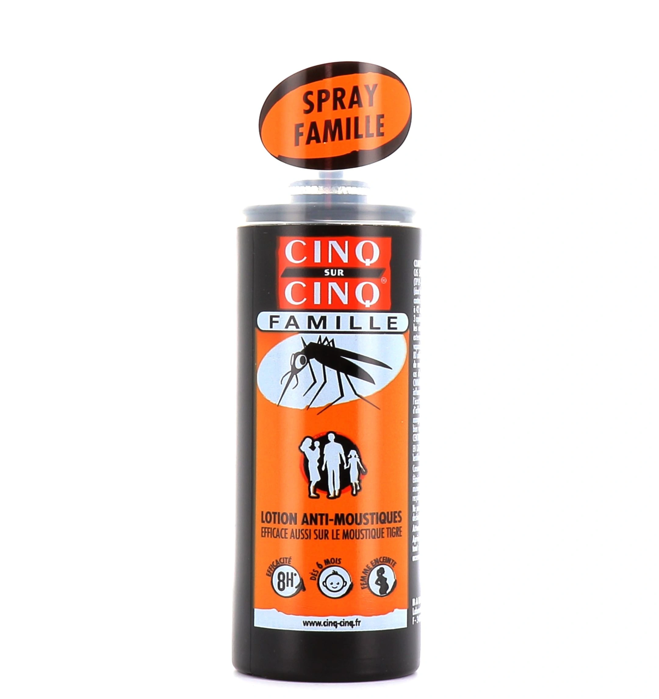 La lotion anti-moustiques Famille Cinq sur Cinq protège toute la famille des piqûres d'insectes tels que moustiques, guêpes, tiques et taons. Ce spray préventif moustiques prévient également des vecteurs du paludisme, de la dengue et du chikungunya. La lotion anti-moustique 5/5 est adaptée aux plus sensibles tels que les femmes enceintes et les enfants dès 6 mois.