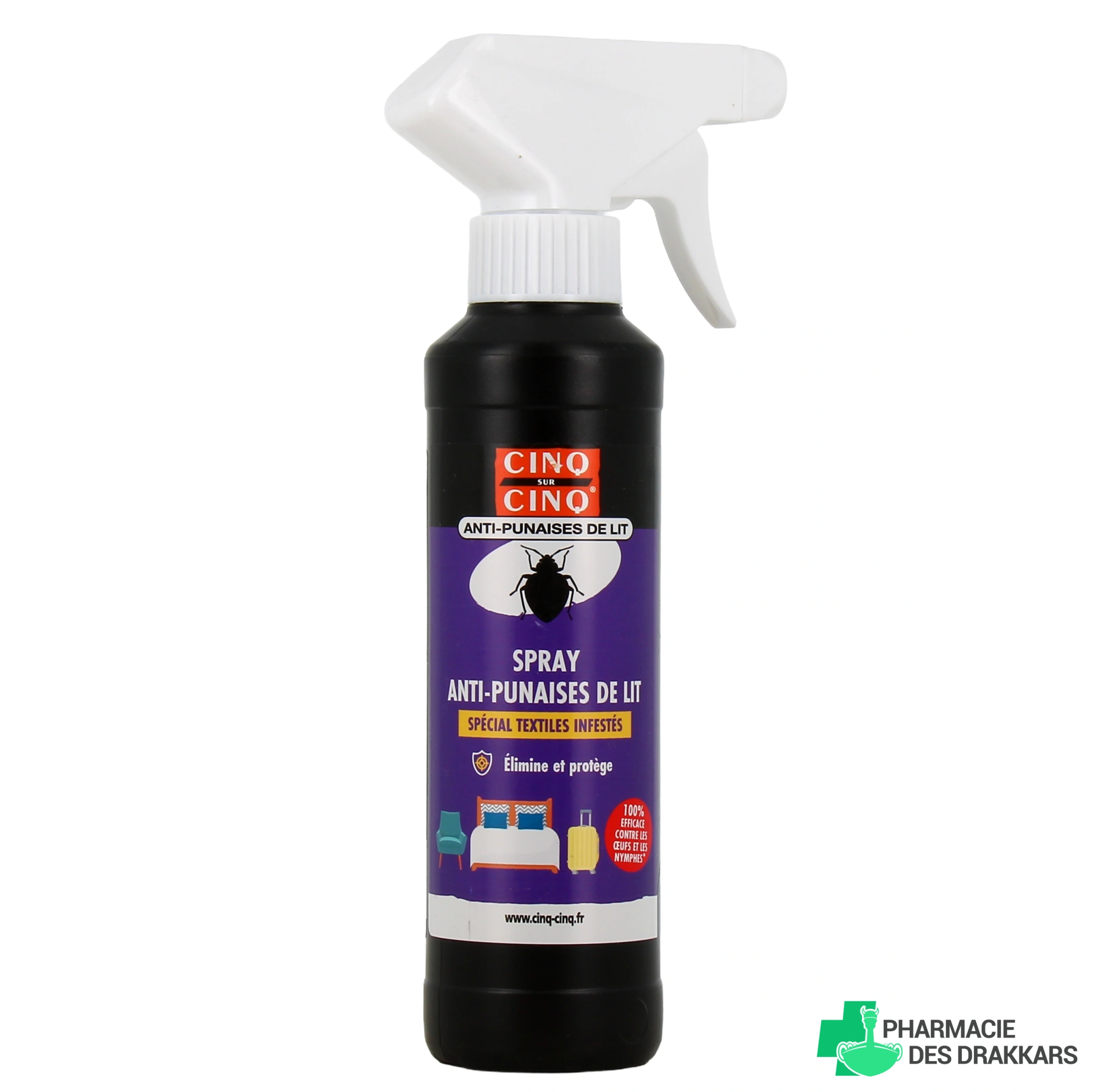 Vous pourrez retrouver le spray Anti-Punaises de Lit Cinq sur Cinq dans les présentations suivantes chez Pharmacie des Drakkars :