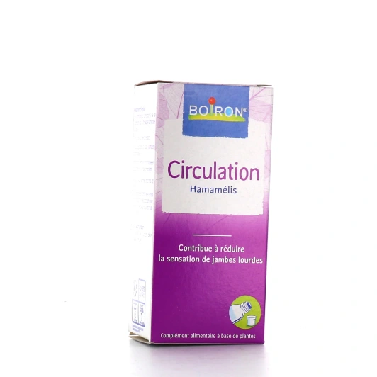 Conditionnement proposé sur notre pharmacie en ligne pour Boiron Circulation Hamamélis : boîte contenant un flacon de 60 ml avec verseur anti-goutte et godet doseur gradué.