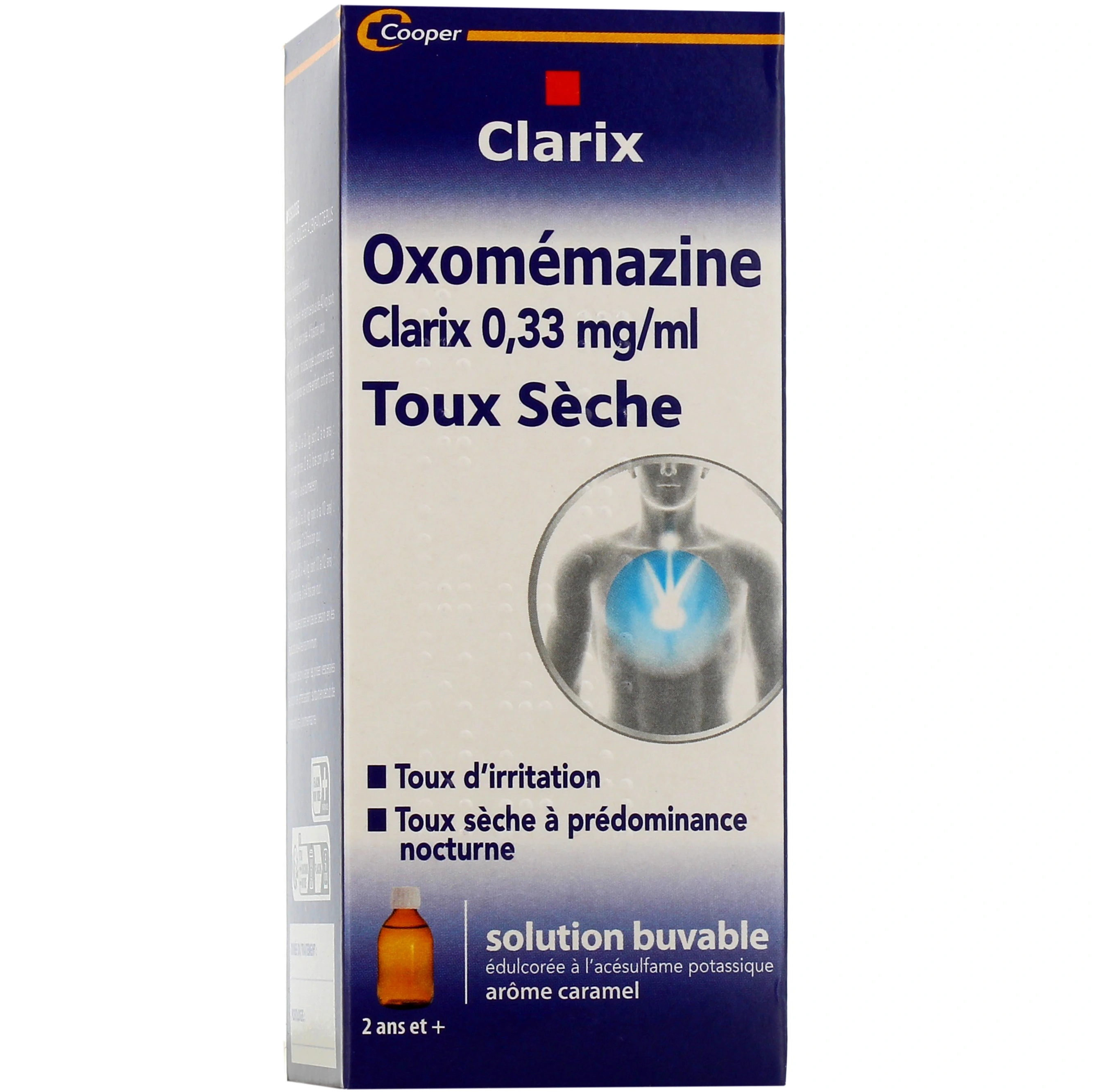 Clarix toux sèche est un médicament antitussif antihistaminique utilisé en cas de toux sèche, notamment lorsque celle ci survient la nuit.