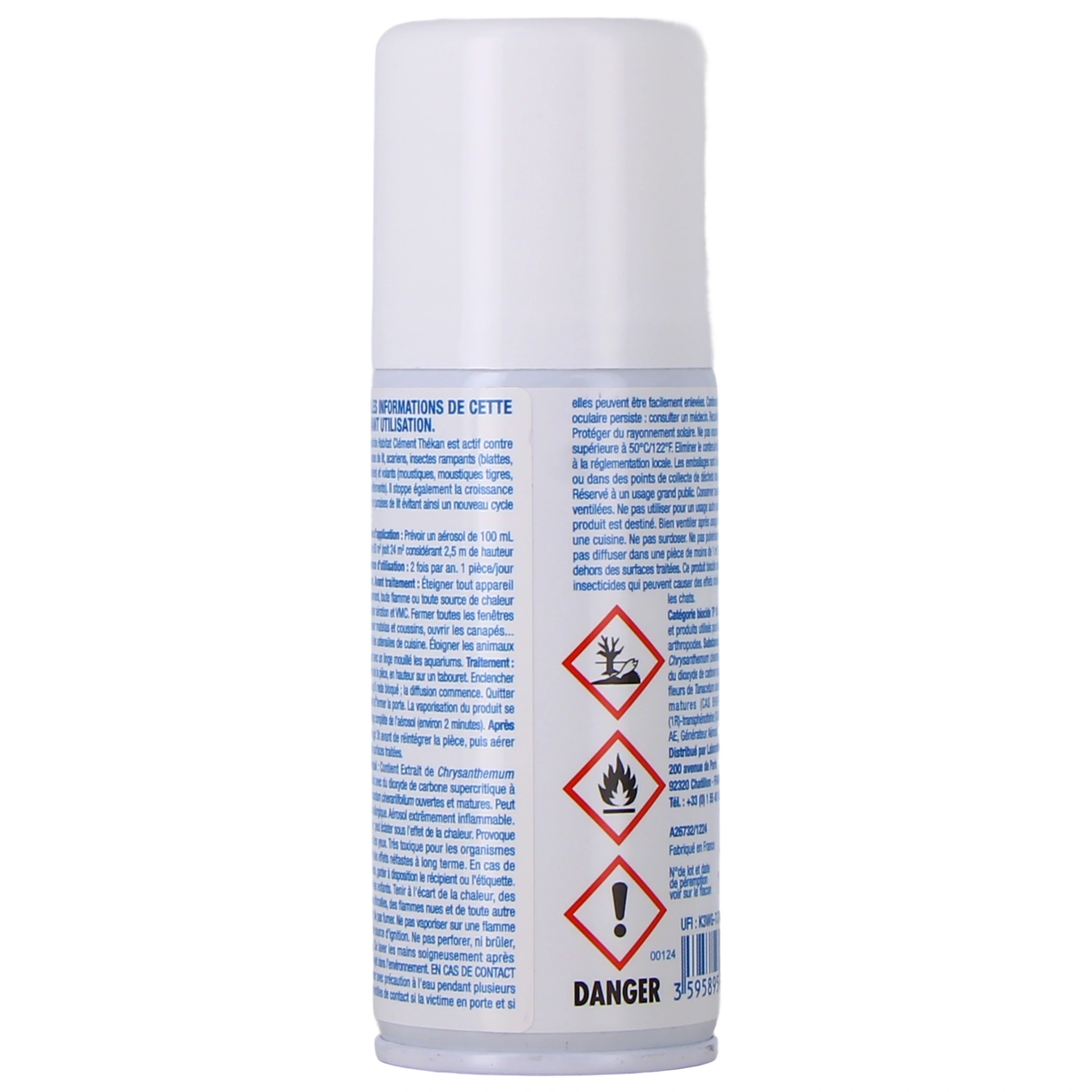 Les présentations disponibles pour le spray Insecticide Habitat Clément Thékan sur notre pharmacie en ligne : flacon spray de 250 ml ou 500 ml (sous réserve de disponibilité) ; fogger de 200 ml.