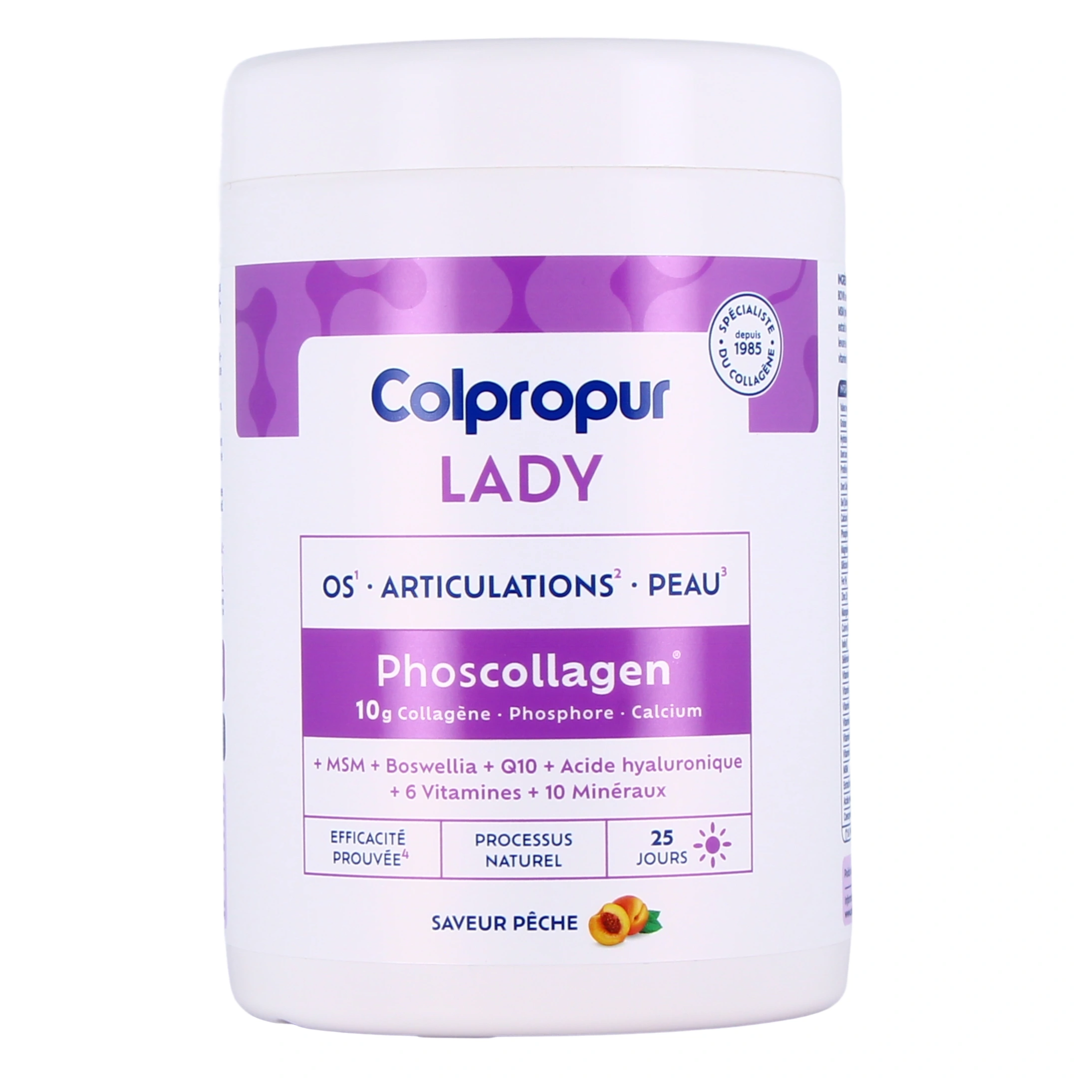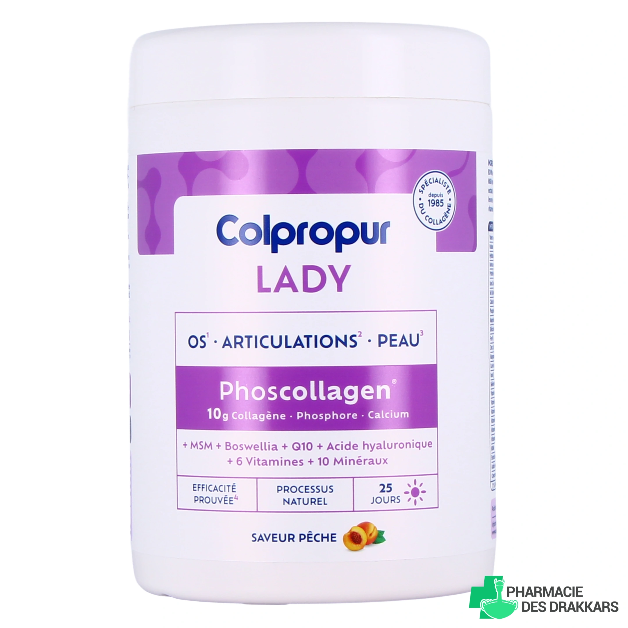 Colpropur Lady est un complément alimentaire à base de Phoscollagen®, un complexe associant du collagène, du calcium et du phosphore. Anti-âge, il agit sur les os, la peau et les articulations.