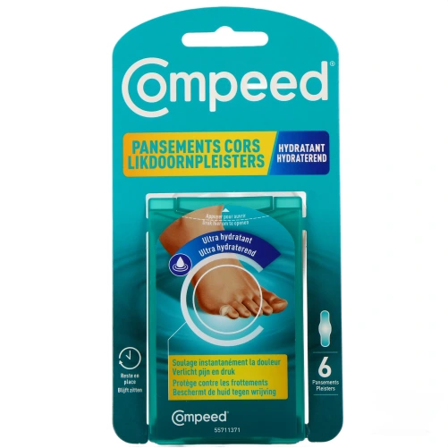 Le Pansement Cors Hydratant de Compeed aide à stopper le développement des cors par une hydratation ciblée et continue.