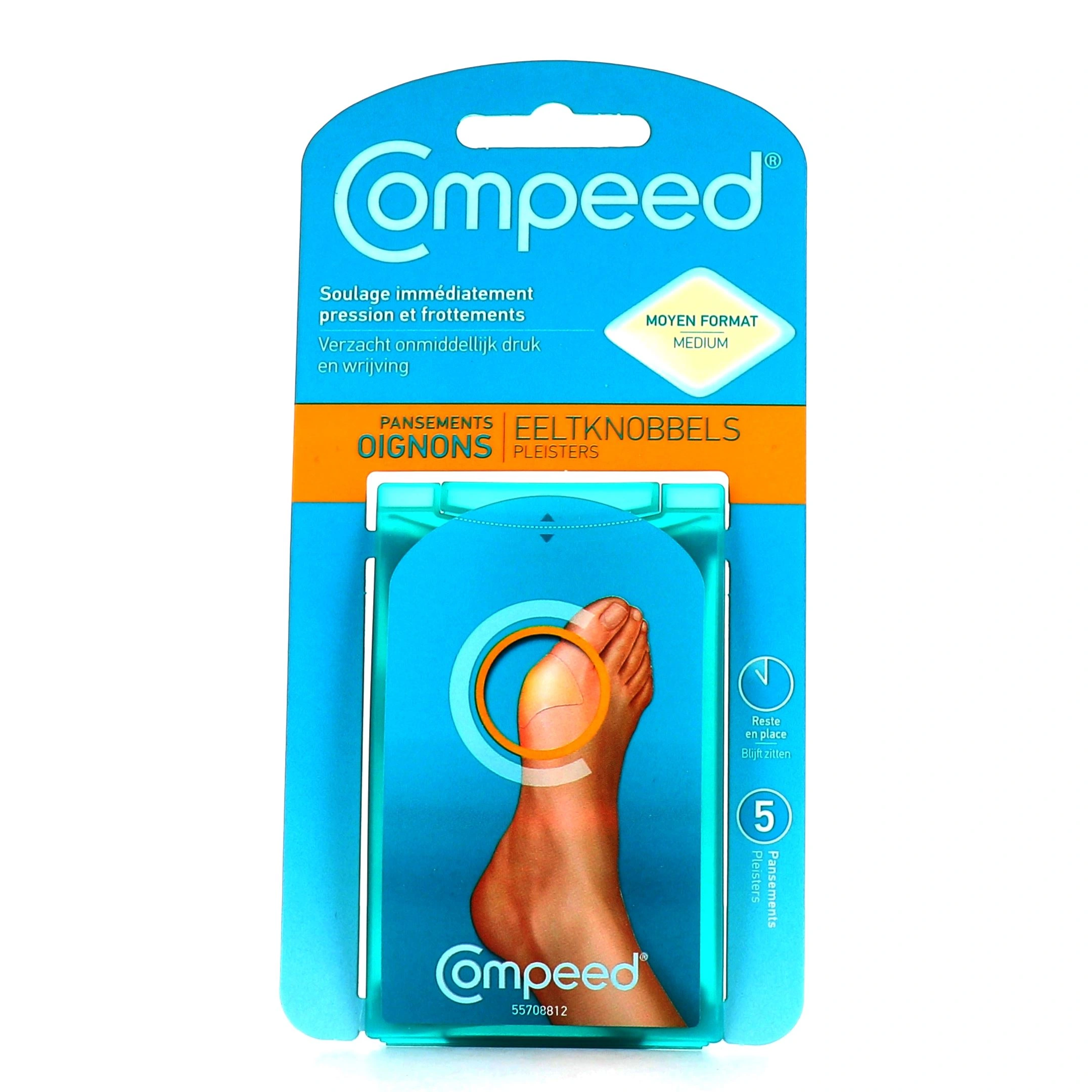 Le pansement oignons ou hallux valgus de Compeed permet de soulager la douleur, la pression et les frottements liés à l'hallux valgus.