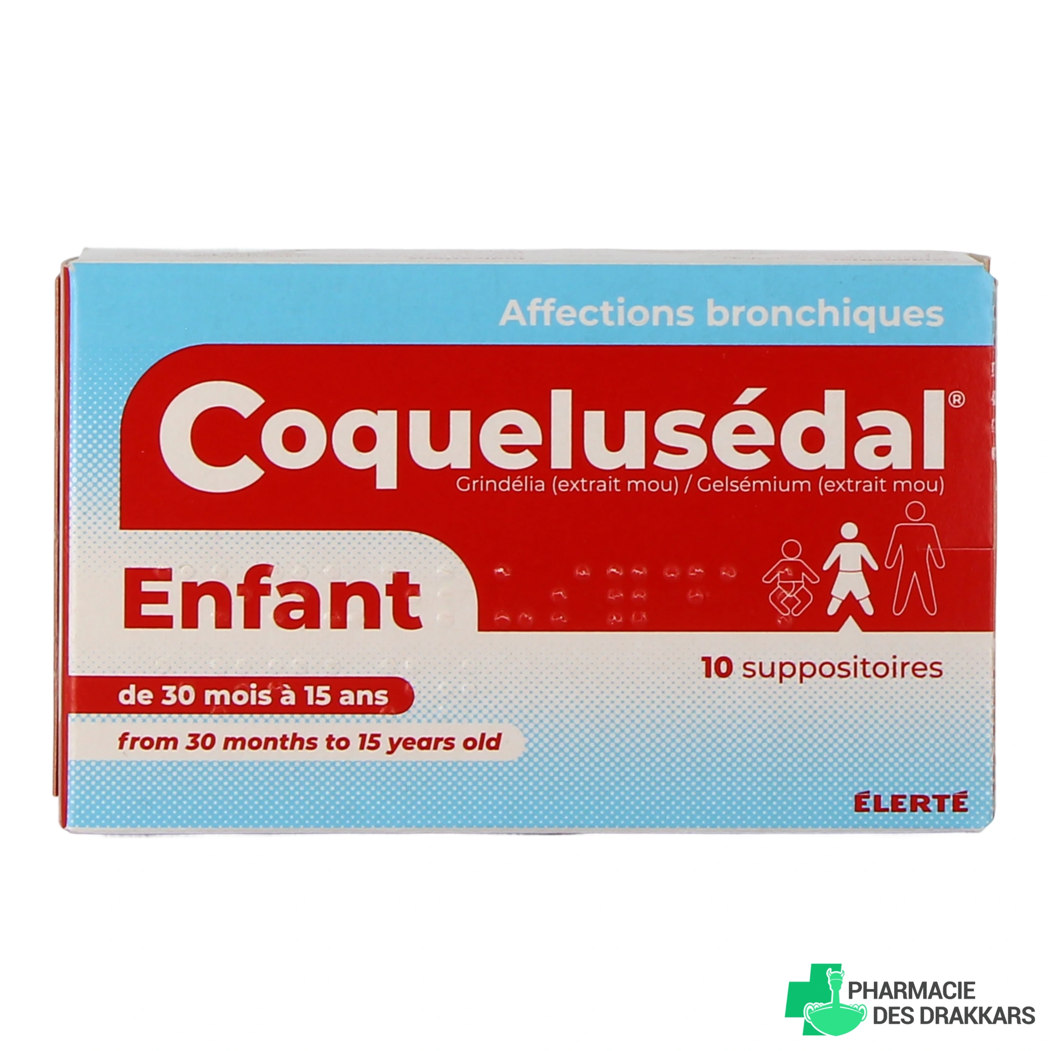 Coquelusedal est un médicament antitussif sous forme de suppositoire, utilisé en traitement d'appoint des affections des bronches chez le nourrisson, l'enfant et l'adulte. Les suppositoires Coquelusedal contiennent des extraits de plantes à visée antitussive, afin d'apaiser la toux.