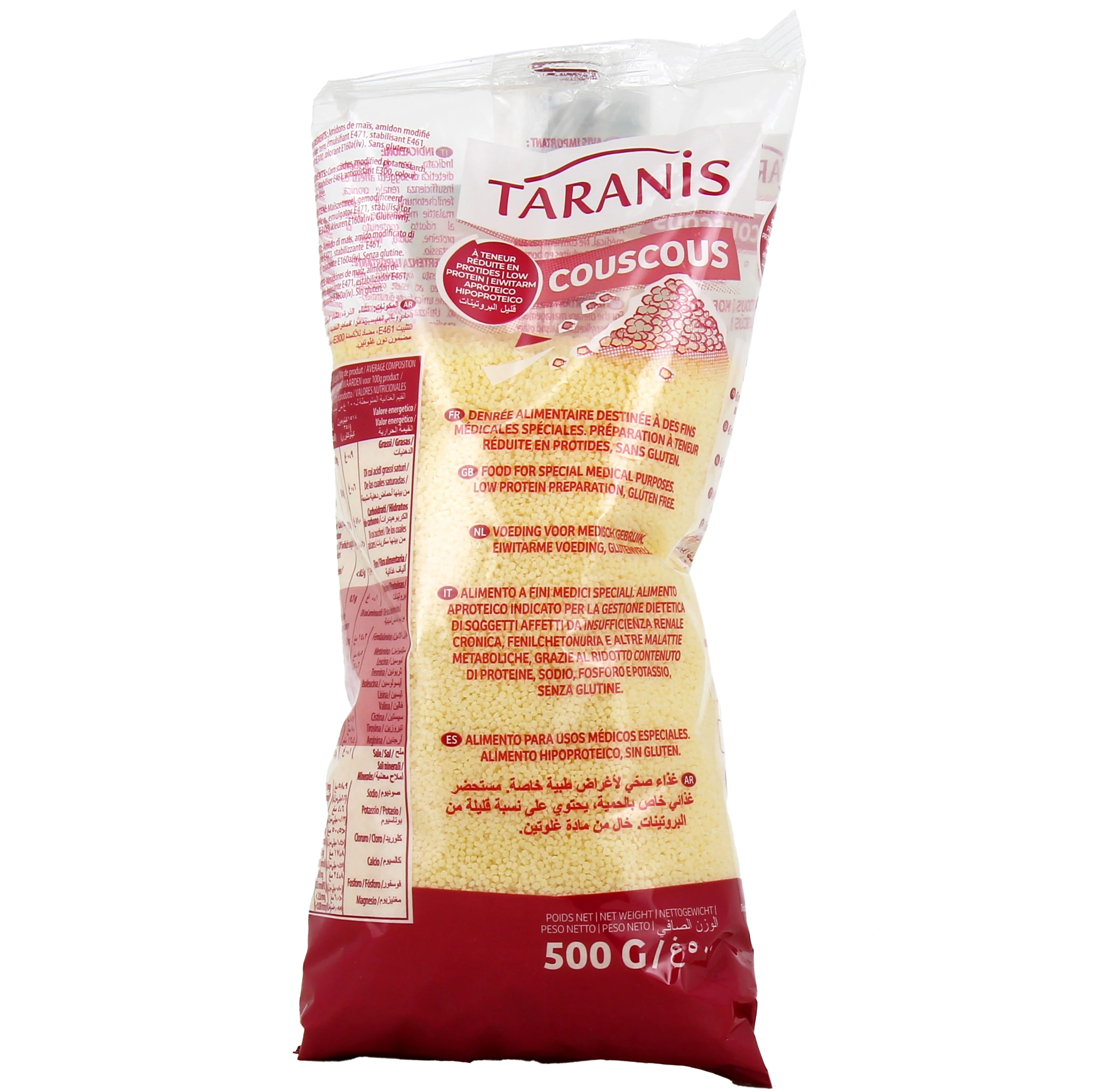 Le couscous Taranis est formulé pour les personnes suivant un régime hypoprotidique, en cas de maladie du catabolisme des acides-aminés par exemple (leucinose, phénylcétonurie, aciduries organiques), ou en cas d'insuffisance rénale notamment.
