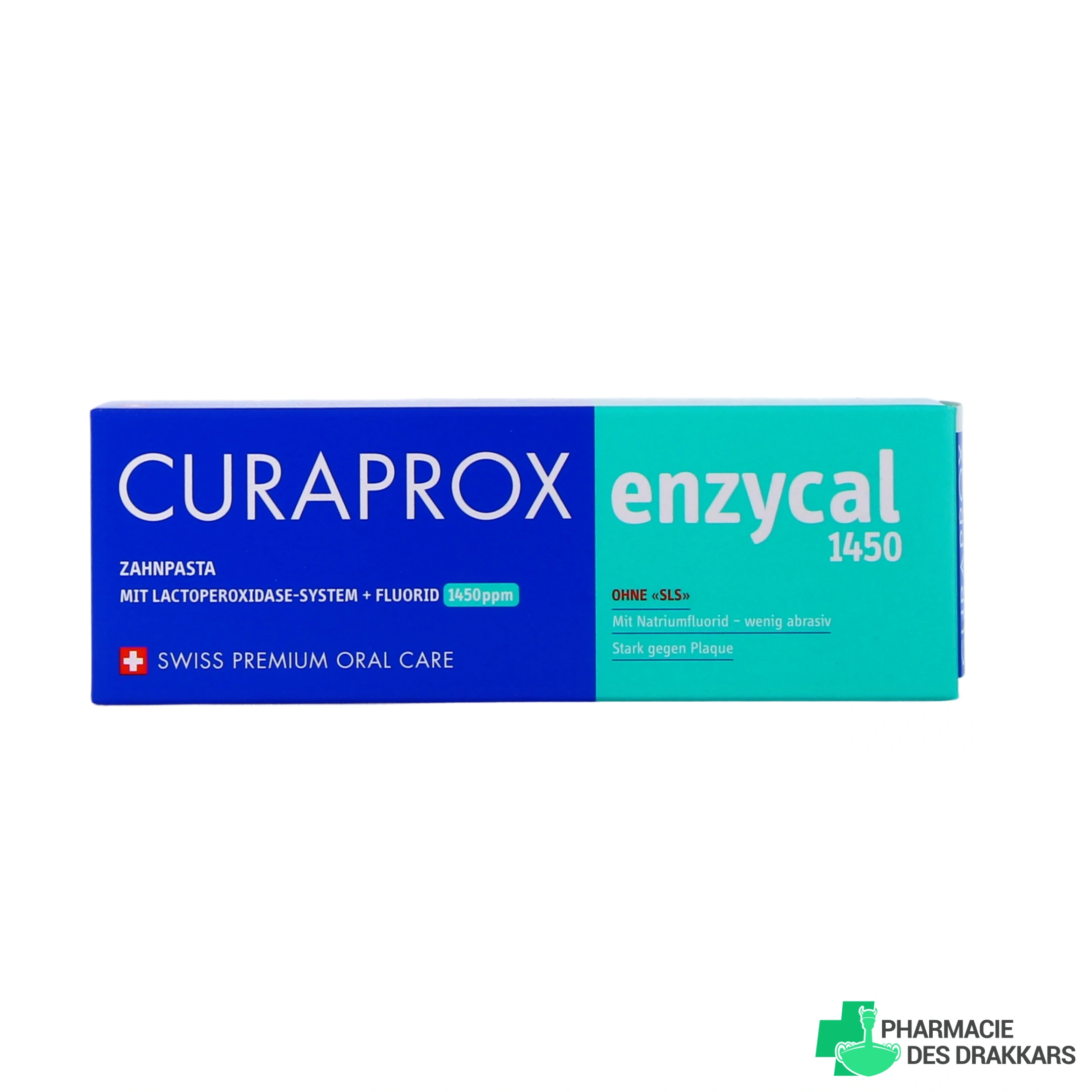 Le dentifrice Enzycal 1450 conçu par Curaprox est un dentifrice qui possède une forte teneur en fluor ainsi que des enzymes, afin de renforcer les défenses naturelles de votre salive.
