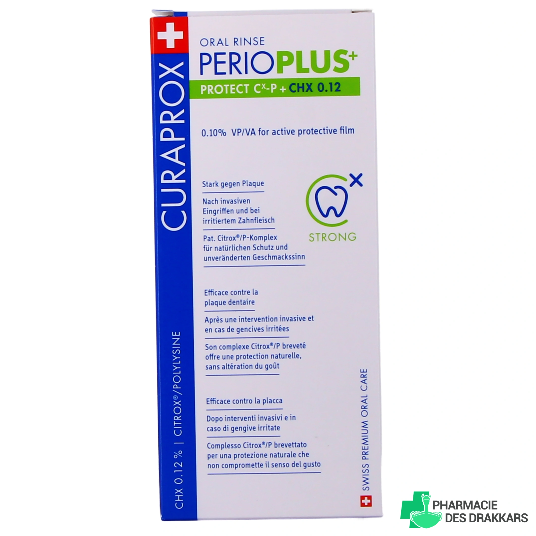 Le bain de bouche Perio Plus+ Protect Curaprox est à retrouver dans les conditionnements suivants chez Pharmacie des Drakkars : flacon de 200 ml.