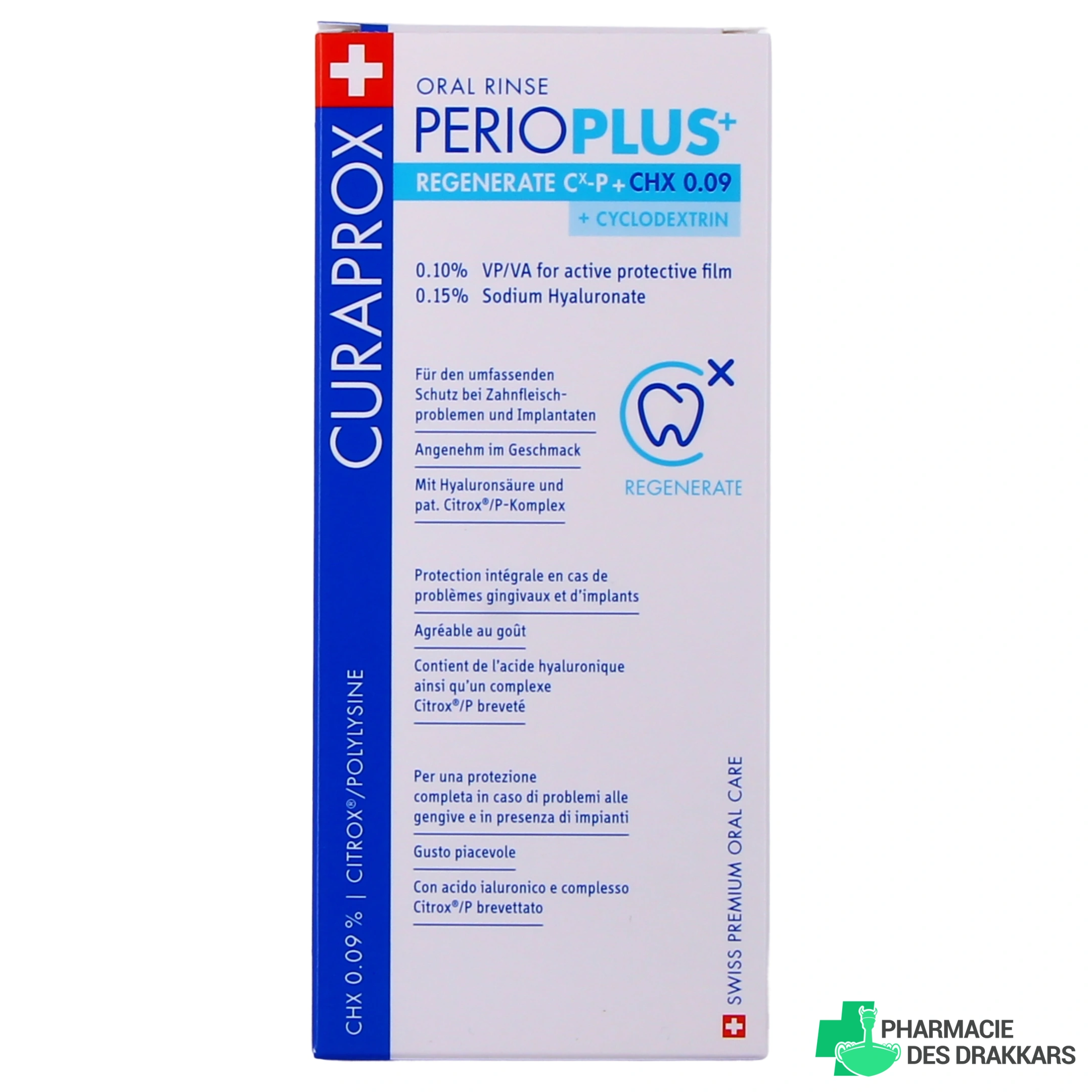 Le bain de bouche Perio Plus+ Regenerate de la gamme Curaprox a été formulé par le laboratoire Curaden afin de vous apporter une protection agricole, en particulier pour les personnes ayant des soucis avec leurs implants et / ou avec leurs gencives.