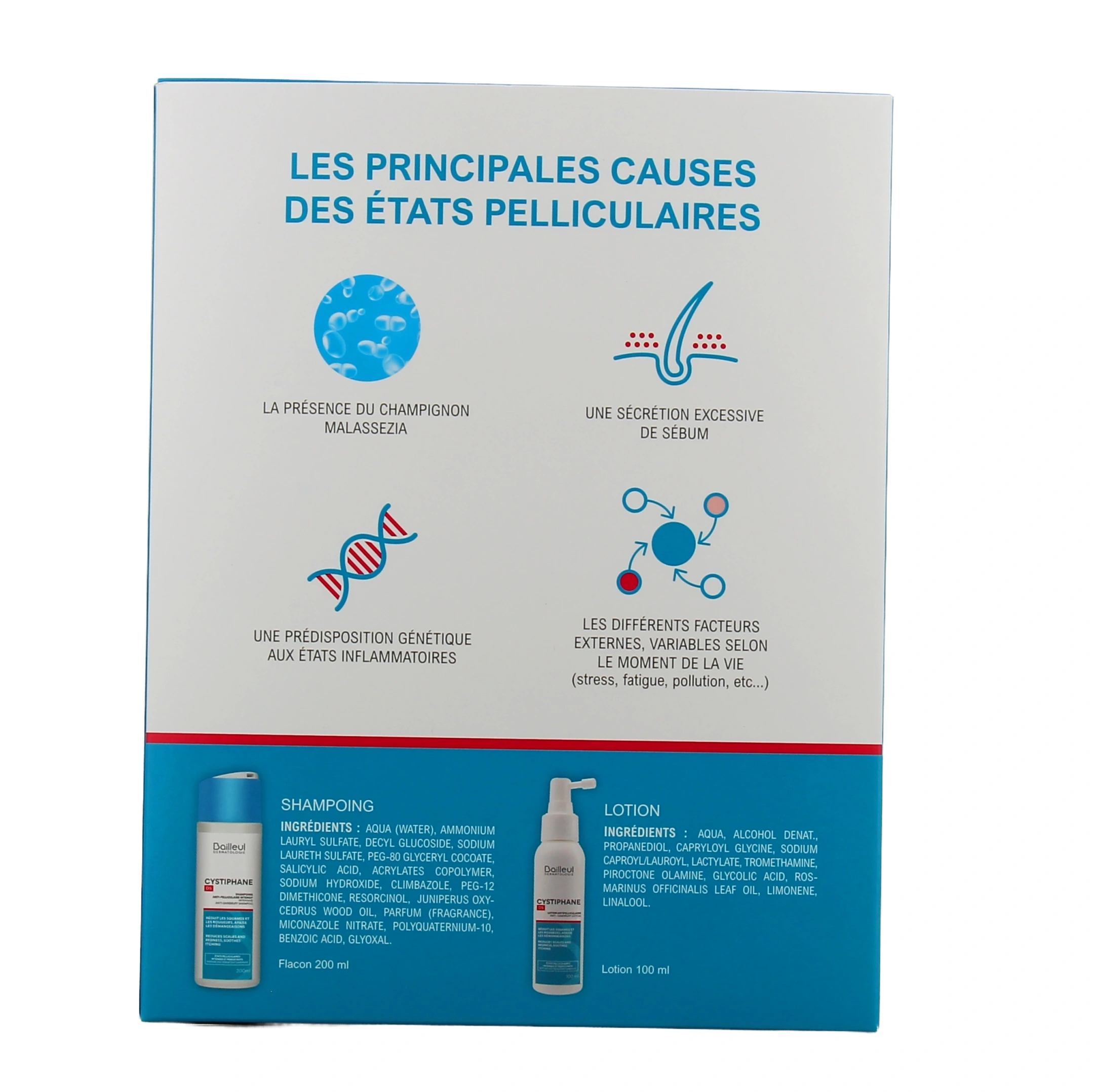 Le shampooing anti-pelliculaire intensif Cystiphane DS a été testé sous contrôle dermatologique, et apporte des résultats prouvés cliniquement. Sa formule contient aussi de l'huile essentielle de cade, afin d'apaiser le cuir chevelu irrité. Son utilisation est réservée à l'adulte.