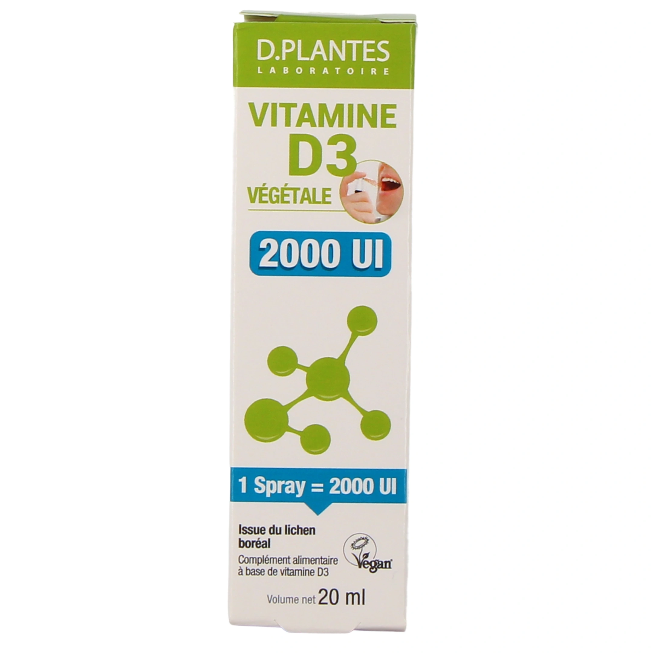 • Vitamine D3 Végétale, 2000 UI - Spray de 20 ml ;
