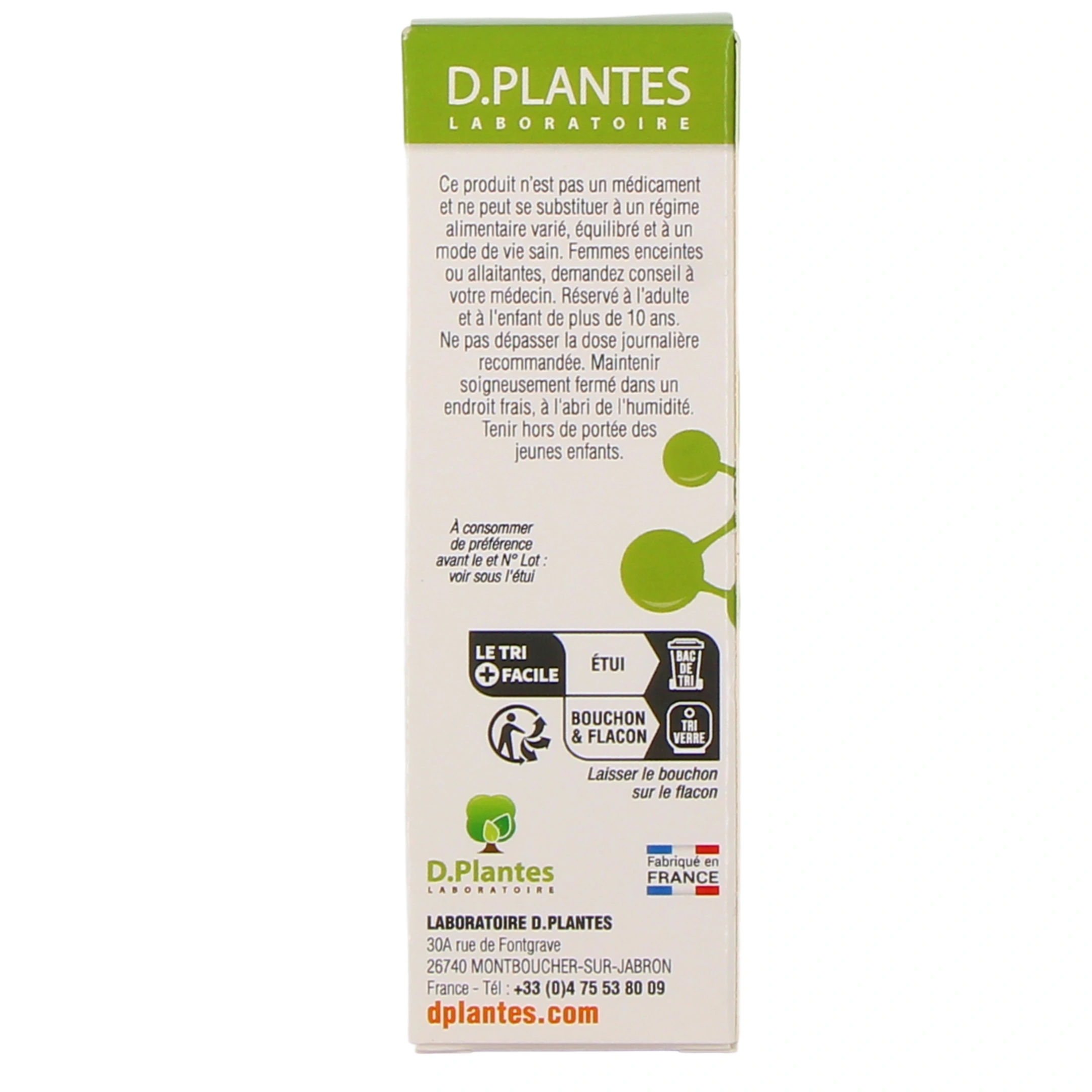 Précautions d'emploi : Ce produit n'est pas un médicament et ne peut se substituer à un régime alimentaire varié, équilibré et un mode de vie sain. Femmes enceintes ou allaitantes, demandez conseil à votre médecin. Réservé à l'adulte et aux enfants de plus de 10 ans. Ne pas dépasser la dose journalière recommandée. Maintenir soigneusement fermé dans endroit frais, à l'abri de l'humidité. Tenir hors de portée des jeunes enfants.