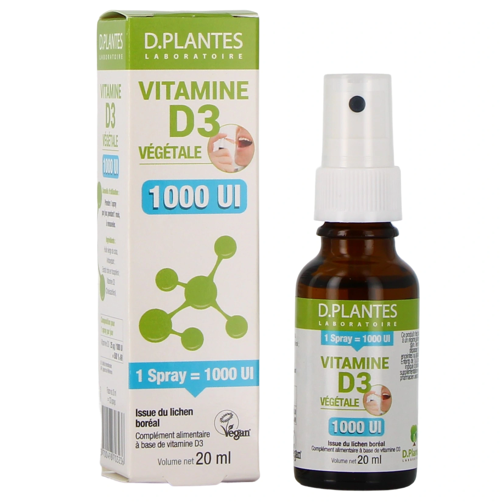 • Vitamine D3 Végétale, 1000 UI - Spray de 20 ml ;