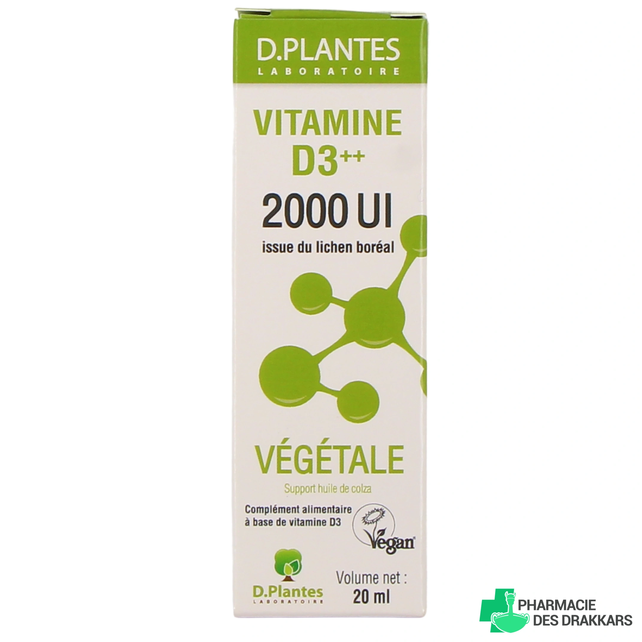 • Vitamine D3 ++ Végétale, 400 UI - Flacon de 20 ml ;
