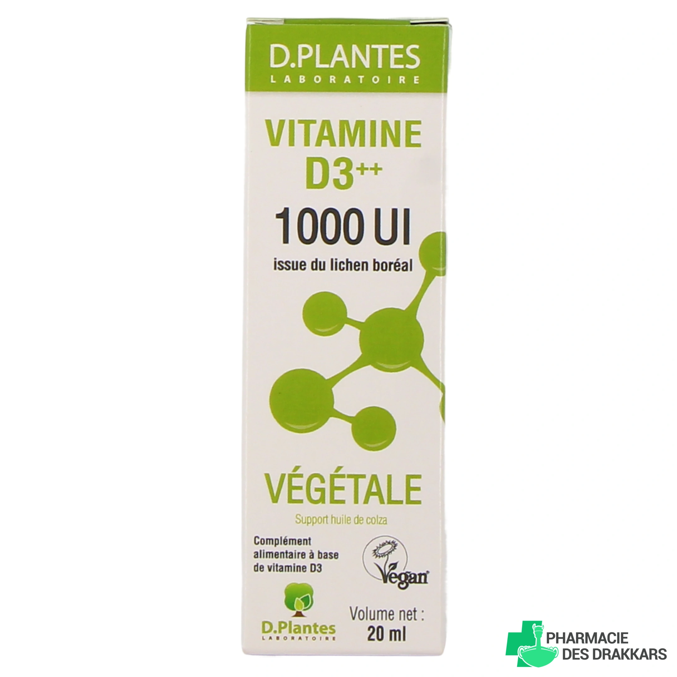 • Vitamine D3 ++ Végétale, 1000 UI - Flacon de 20 ml ;