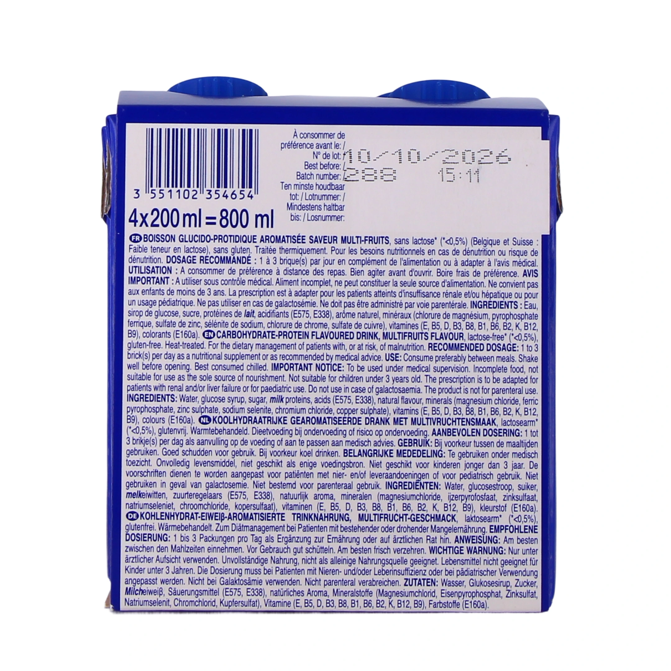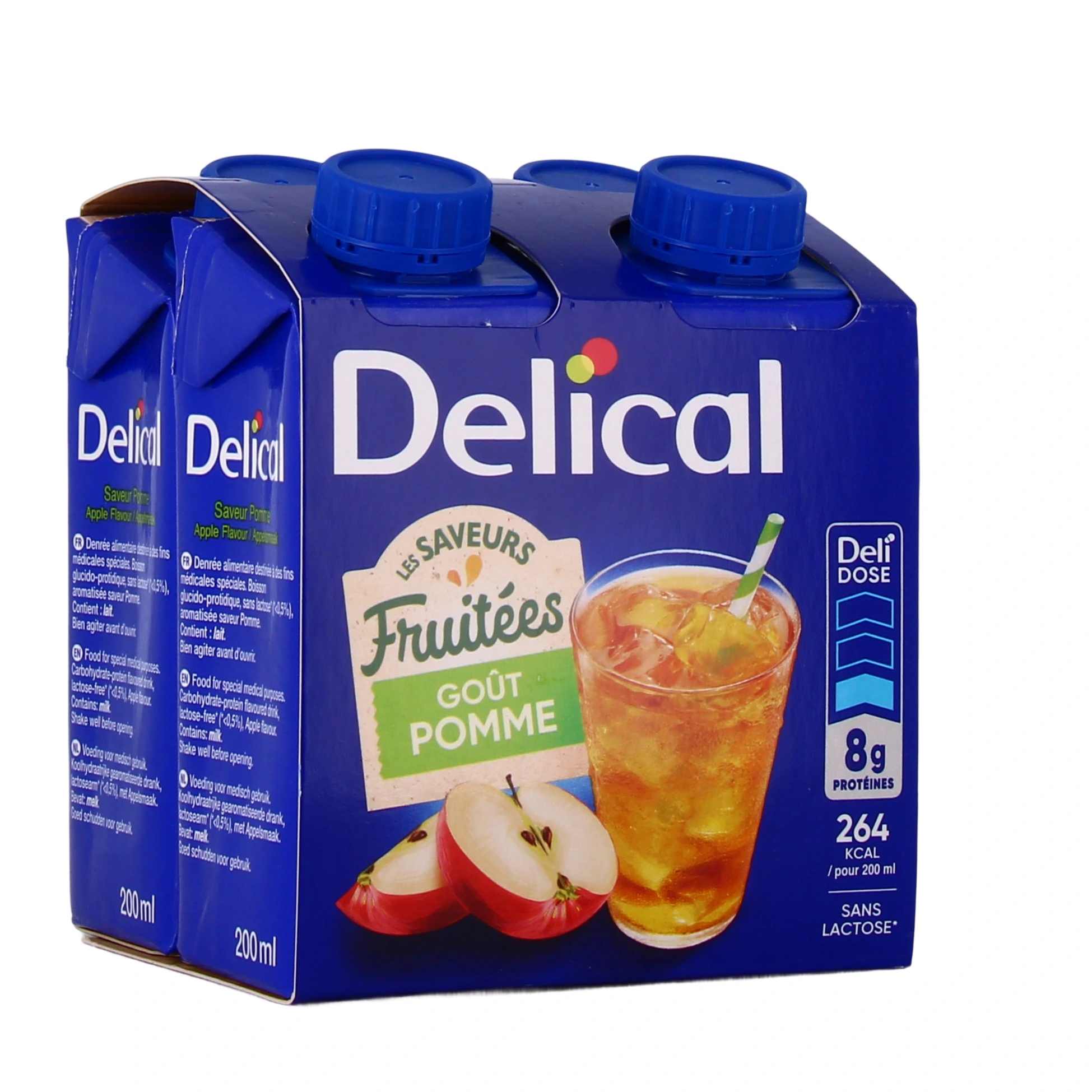 Les conditionnements disponibles pour la boisson fruitée Delical sur notre pharmacie en ligne : lot de 4 bouteilles de 200 ml de boisson.