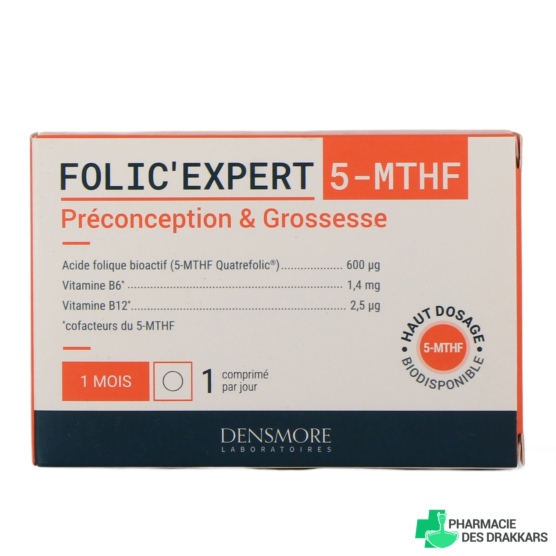 Le complément alimentaire Folic Expert 5-MHTF de Densmore est à retrouver dans les présentations suivantes chez Pharmacie des Drakkars : boîte de 30 comprimés ou 90 comprimés