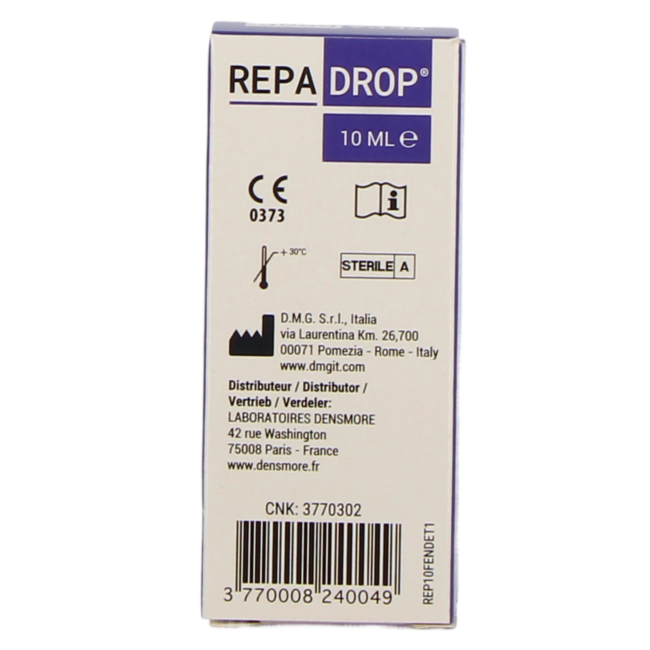 La solution ophtalmique Repadrop est un dispositif médical qui permet de lubrifier et protéger la cornée en cas d'inconfort oculaire et de symptômes douloureux. Cette solution oculaire est également compatible avec le port de lentilles de contact.