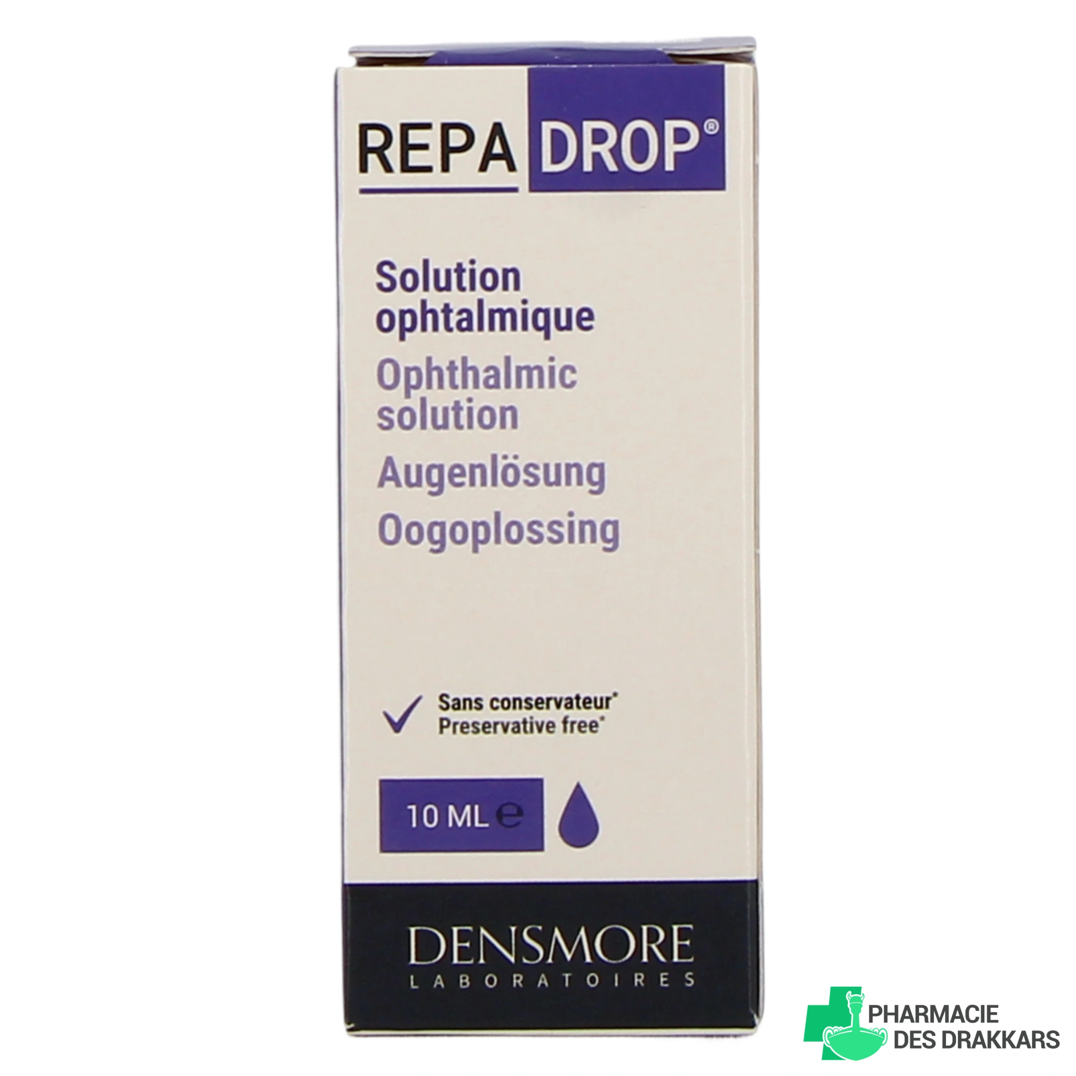 Conditionnement proposé sur notre pharmacie en ligne pour la solution ophtalmique Repadrop Densmore : Flacon de 10 ml. Retrouvez aussi la solution ophtalmique Phylarm en unidoses.
