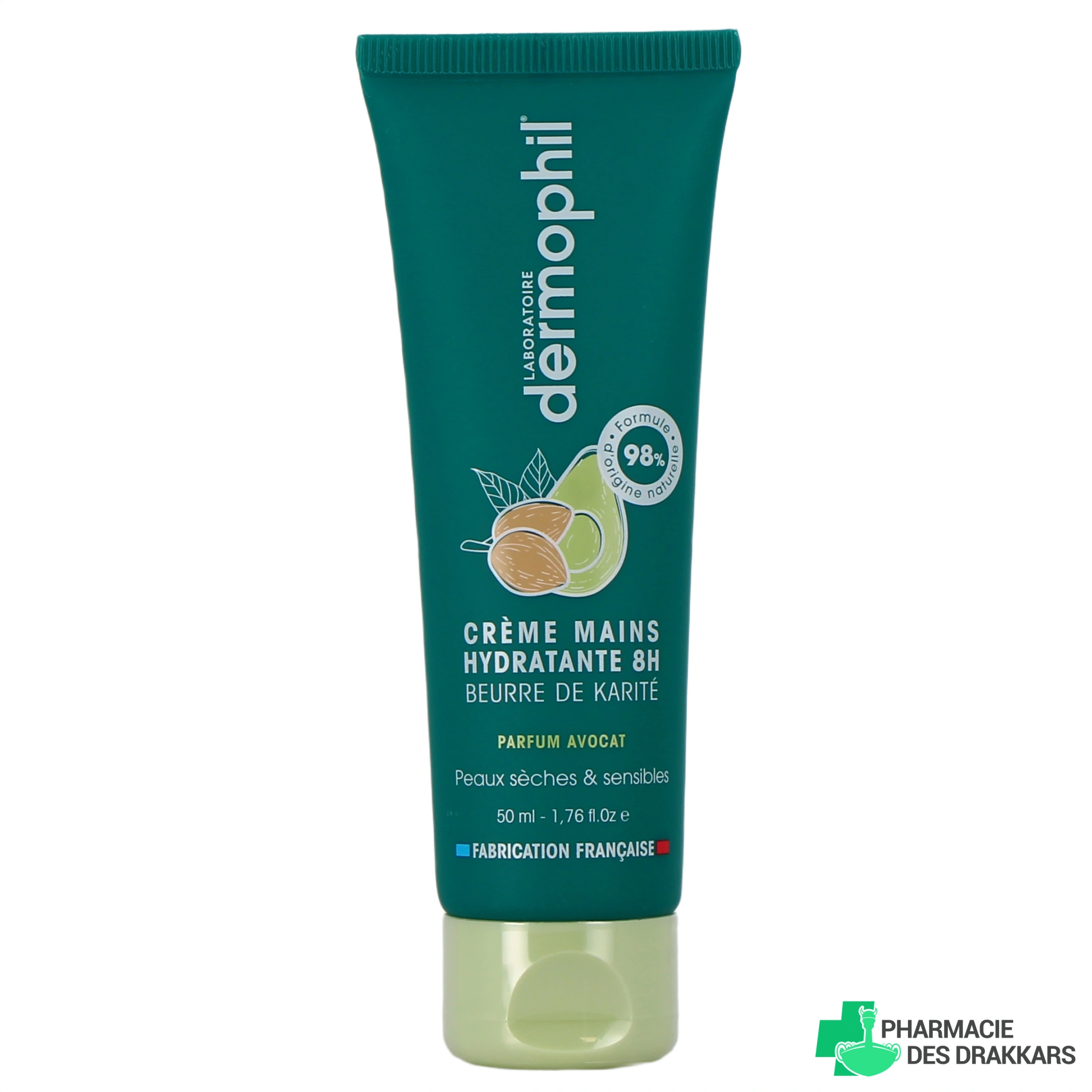 Tube de 50 ml de crème mains hydratante Bio Dermophil Beurre de karité - Parfum Avocat.